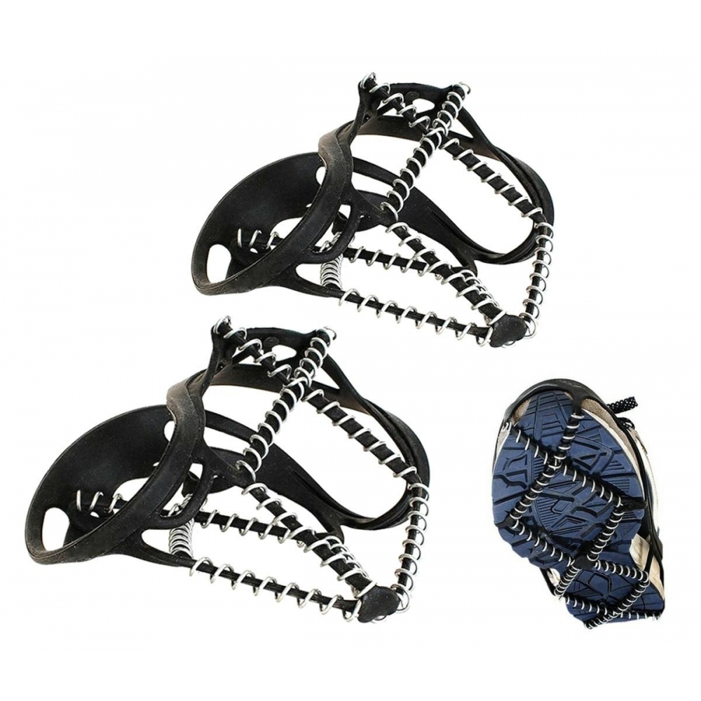 Lankstūs, neslystantys batų užvalkalai su grandine! Puikiai tinka žygiams miške ir kalnuose, taip pat žygiams sudėtingomis reljefo ir oro sąlygomis. Dėl grūdinto plieno grandinės jie efektyviai apsaugo nuo slydimo ir kritimo. Jie lengvi ir patogūs dėvėti, puikiai prisitaiko prie jūsų bato formos. Dėl silikono juos galima reguliuoti, kad tiktų keliems batų dydžiams (38–45) neslystant.