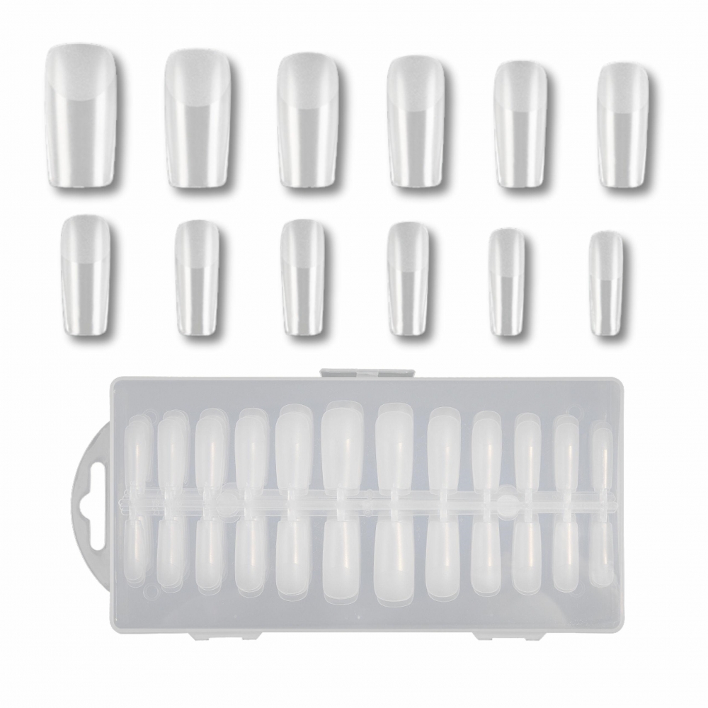 240 dirbtinių nagų rinkinys yra profesionalus sprendimas grožio salonams ir individualiems naudotojams. Antgaliai pagaminti iš aukštos kokybės medžiagos, kuri nelinksta ir nepalieka baltų žymių pjaustant ar lenkiant. Dėl matinio pagrindo jiems nereikia papildomo šlifavimo, taip sutaupoma laiko ir palengvinamas darbas.