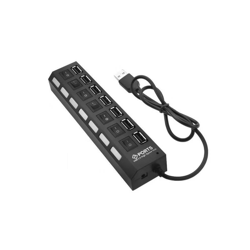 Itin greitas, 7 prievadų USB šakotuvas su jungikliais! Daugiau nereikės atjungti kitų įrenginių, kai norite prijungti kitą įrenginį prie kompiuterio USB prievado. Jums nebereikės rinktis! Šis USB šakotuvas leidžia prijungti standžiuosius diskus, USB atmintines ar bet kokius kitus periferinius įrenginius pagal jūsų poreikius ir be jokių apribojimų. Taip pat išvengsite problemų dėl lėto kompiuterio ir operacinės sistemos paleidimo laiko bei padidėjusių energijos sąnaudų – tik vienas prie šakotuvo prijungtas USB prievadas lieka pilnai apkrautas. Naudojant USB 2.0 technologiją, galima pasiekti patenkinamą duomenų perdavimo greitį iki 480 MB/s, išlaikant visišką suderinamumą su USB 1.1 ir 1.0 (atitinkamai mažesniu greičiu).