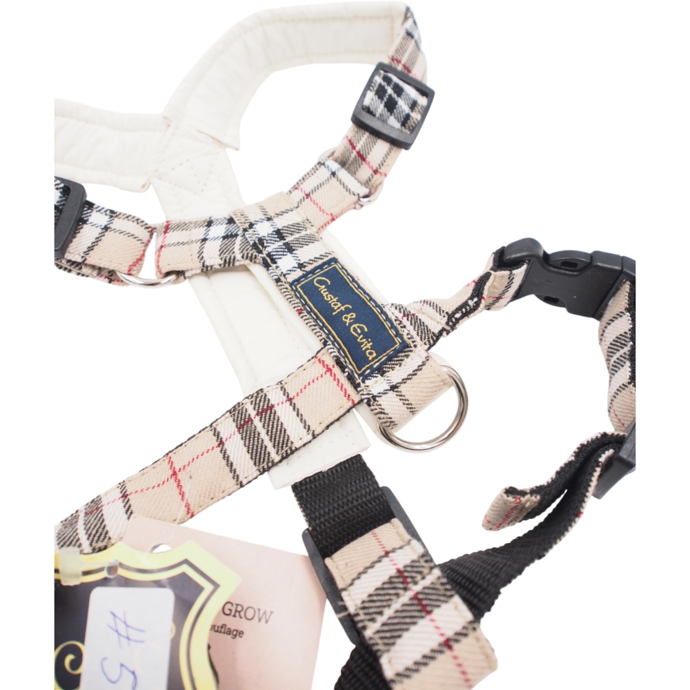 Išskirtinio dizaino Gustaf & Evita šuns petnešos su elegantišku languotu raštu – tai stiliaus ir komforto derinys jūsų augintiniui. Petnešos pagamintos iš tvirtos, tačiau švelnios medžiagos su minkštu vidiniu pamušalu, užtikrinančiu patogumą ir apsaugą nuo trinties.