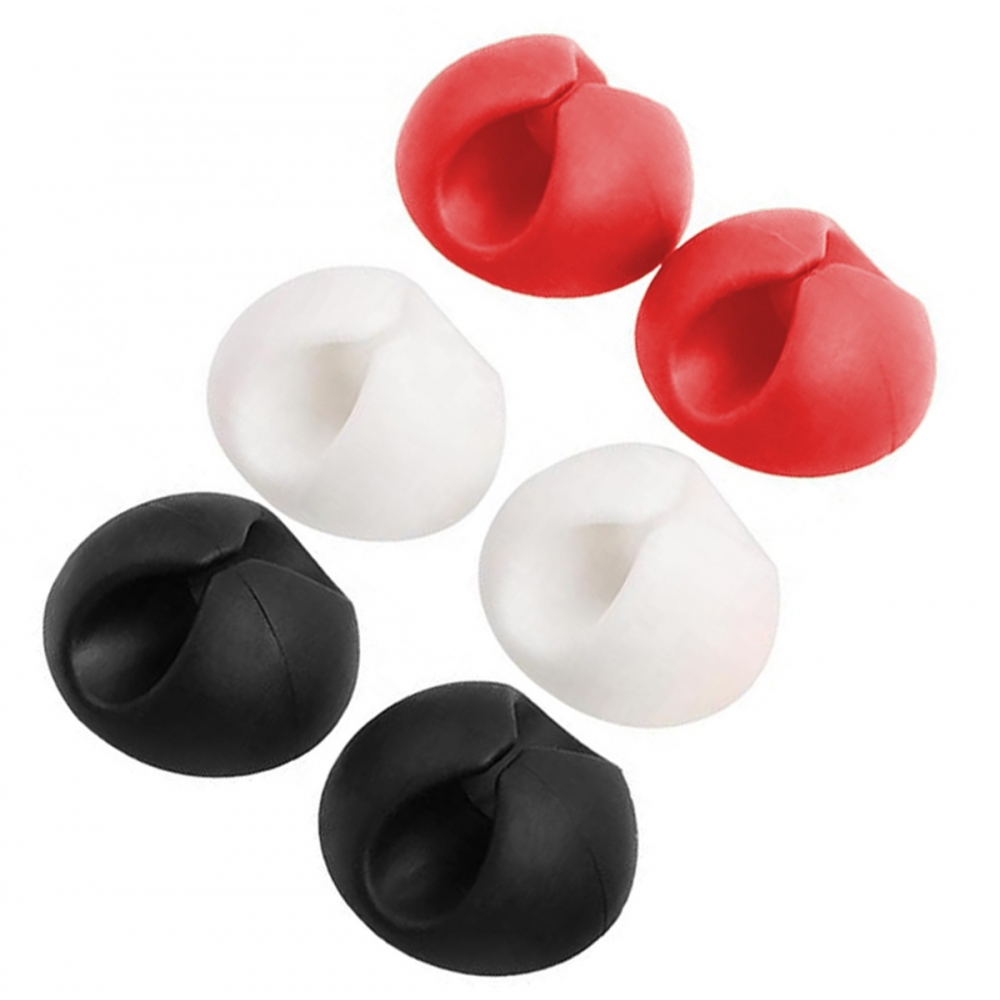 Šešių lipnių elektros kabelių laikiklių rinkinys. Ypač naudingi susivėlusiems kabeliams sutvarkyti.