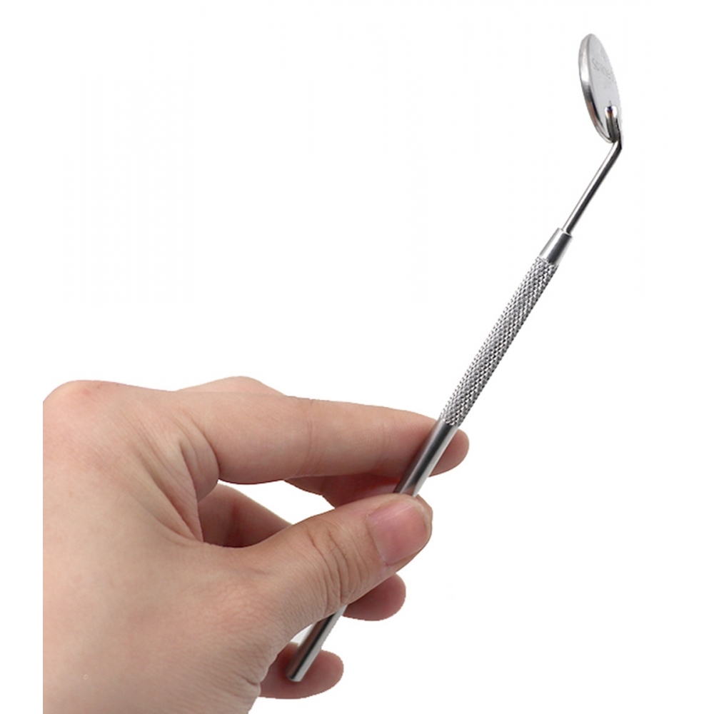 Profesionalus dantų veidrodėlis. Būtinas kiekvieno odontologo daiktas. Pagamintas iš tvirto nerūdijančio plieno. Ilga rankena su tekstūruota danga palengvina manevringumą darbo metu. Veidrodėlis leidžia kruopščiai apžiūrėti burnos ertmę ir dantų sveikatą.