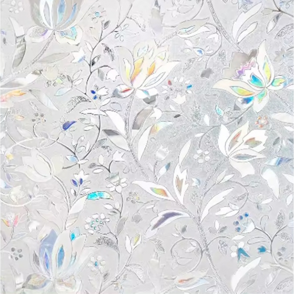 Dekoratyvinė, skaidri, lipni langų plėvelė. Plėvelė pagaminta iš medžiagos, kuri išsklaido šviesos spindulius, sukurdama spalvingus efektus. Produktas praleidžia šviesą, tuo pačiu apsaugodamas nuo smalsių kaimynų akių. Lengvas montavimas ir patrauklus raštas, imituojantis vitražą (gėlės). Puikiai tinka kaip langų puošmena.