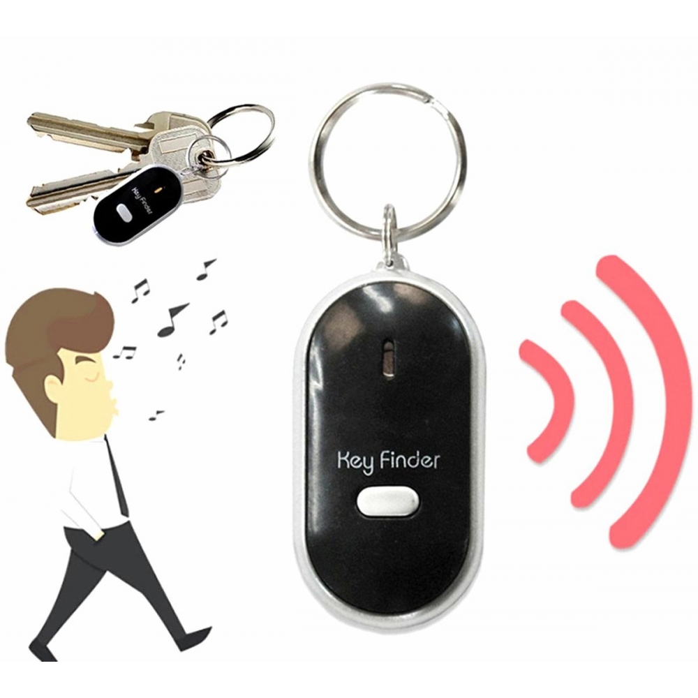 Kompaktiškas raktų pakabukas - ieškiklis su LED lempute. Įrenginys reaguoja į švilpimą iš kelių metrų atstumo. Išgirdęs garsą, raktų pakabukas skleis pavojaus signalą ir mirksės raudonas LED indikatorius. Šis kompaktiškas raktų pakabukas visada žinos, kur padėjote raktus. Papildomas plieninis pakabukas leidžia pakabinti visus reikiamus raktus ant raktų pakabuko.