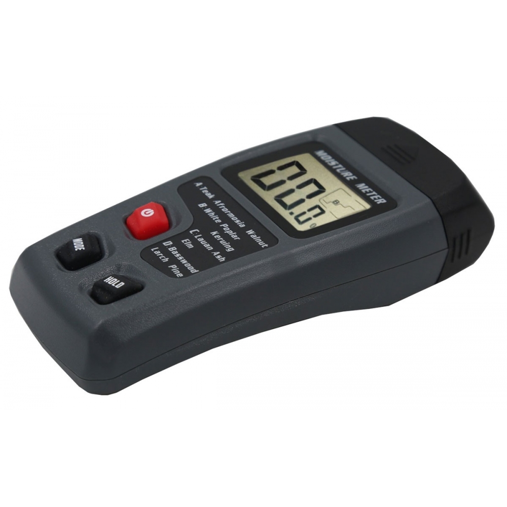 Visiškai naujas, aukštos kokybės drėgmės matuoklis medienos drėgmei matuoti. Puikiai tinka tiek profesionaliam naudojimui masinio medienos apdirbimo srityje, tiek naudojimui namuose, pavyzdžiui, malkų drėgmės kiekiui tikrinti. Jis leidžia patogiai ir greitai patikrinti medienos drėgmės kiekį, naudojant varžos principą.
