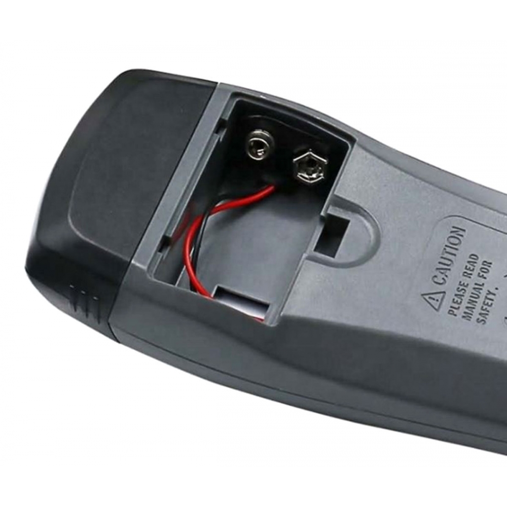 - Drėgmės matuoklis maitinamas 9 V 6F22 baterija (į komplektą neįeina), užtikrinančia ilgą ir be rūpesčių veikimą.