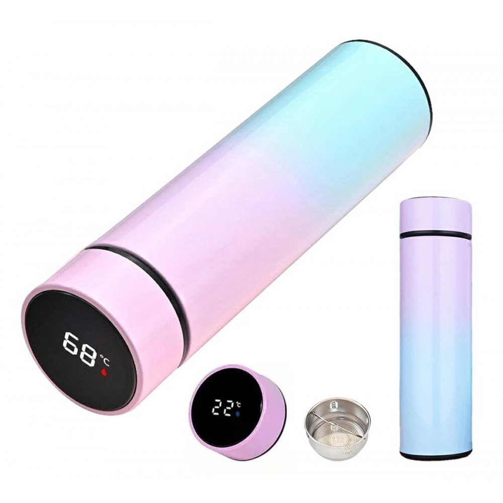 Aukštos kokybės termo puodelis - termosas, pagamintas iš nerūdijančio plieno ir aukštos kokybės plastiko. Įrengtas LCD ekranas, rodantis esamą gėrimo temperatūrą (ant dangtelio). Dėl plono ir ergonomiško dizaino jį labai saugu laikyti. Jis taip pat turi patogų mygtukinį dangtelį. Specialus separatorius atskiria kavos tirščius ir kitas liekanas nuo kavos, arbatos ir gėrimų. Puikiai tinka tiek šaltiems, tiek karštiems gėrimams laikyti dėl puikių šilumos izoliacijos savybių! Puodelis taip pat turi specialų LED indikatorių šalia ekrano, kuris aiškiai rodo, ar jūsų gėrimas yra šaltas, ar karštas.