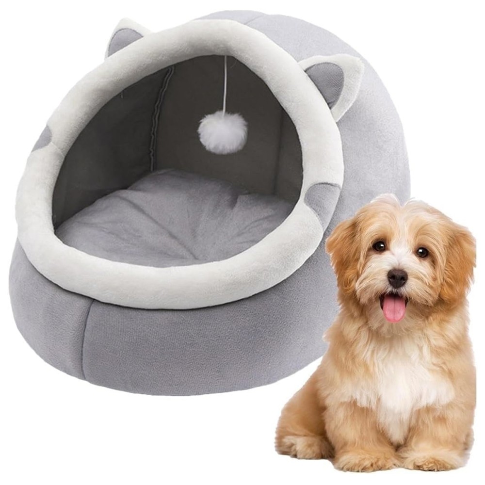 Patogus ir estetiškai patrauklus guolis jūsų augintiniui. Jis labai minkštas ir tinkamas augintiniams. Unikalus dizainas, uždaros dėžės su katės ausimis formos, pasižymi storomis sienelėmis ir neslystančiu audinio pagrindu, užtikrinančiu jūsų augintinių komfortą ir saugumą. Guolis pripildytas minkštų, lanksčių putų. Jis turi patogų, minkštą pagrindą.