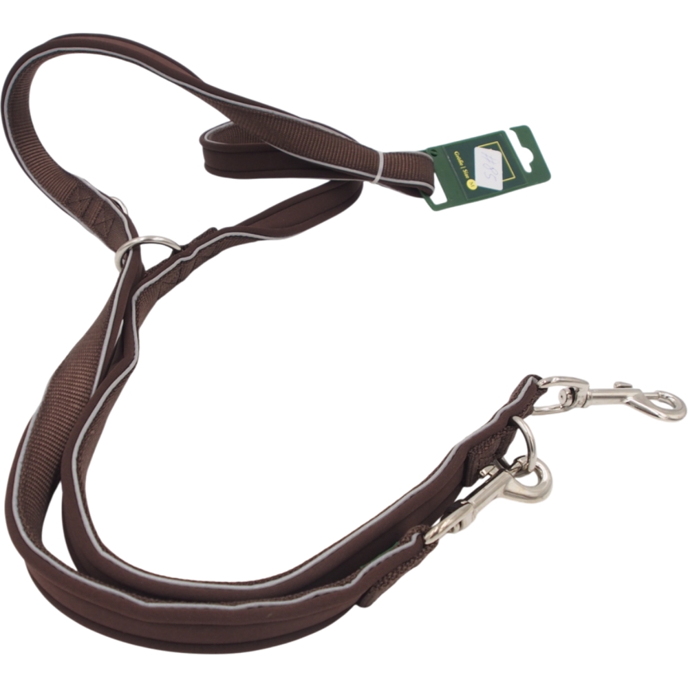 Dviejų tvirtų karabinų ir kelių metalinių žiedų konstrukcija leidžia reguliuoti ilgį bei naudoti pavadėlį įvairiai – tiek trumpiems, tiek ilgiems pasivaikščiojimams ar treniruotėms.