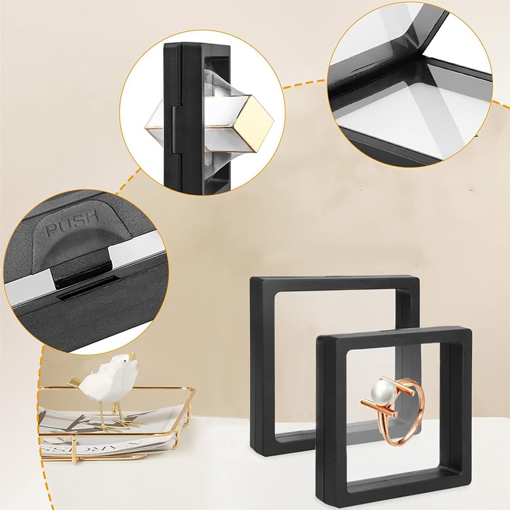 Stilingas ir praktiškas rėmelis su skaidria membrana – puikus pasirinkimas papuošalams, monetoms, smulkiems suvenyrams ar kolekcinėms vertybėms laikyti bei eksponuoti. Unikali konstrukcija leidžia daiktus įdėti tarp dviejų tamprių plėvelių, kurios saugiai prilaiko objektą vietoje, suteikdamos „pakibusio ore“ efektą.