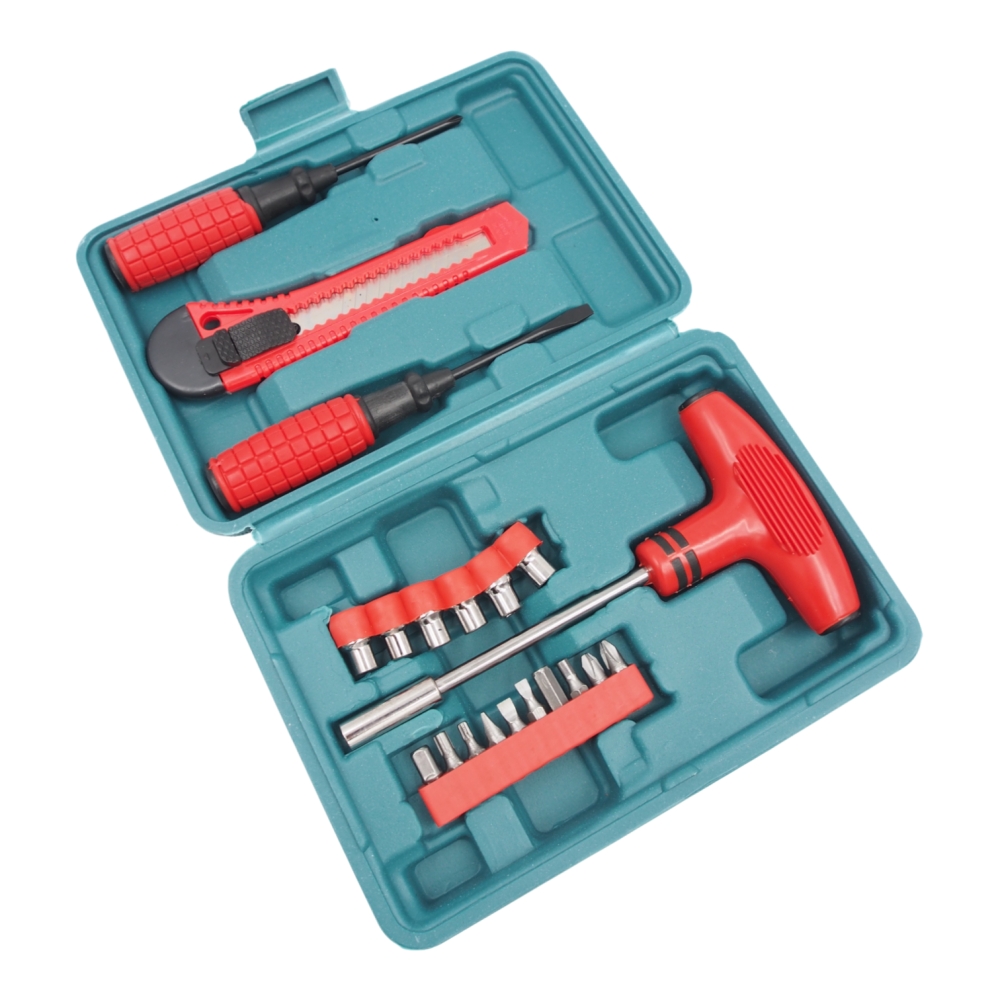 Visi įrankiai tvarkingai sudėti į tvirtą, lengvai uždaromą plastikinį lagaminėlį, todėl juos paprasta laikyti bei transportuoti. Tai puikus pasirinkimas ir kaip rinkinys automobiliui ar pirmųjų įrankių komplektas naujakuriams!