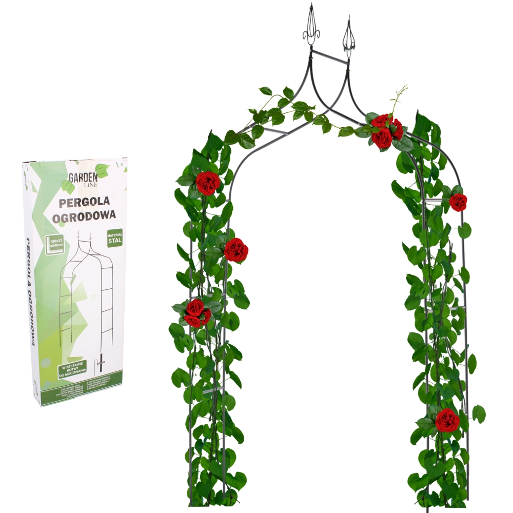 Modelis išsiskiria dekoratyviniais smailiais viršūnių elementais, kurie suteikia pergolai elegantišką išvaizdą ir išskiria ją iš įprastų sodo arkų. Tvirta metalinė konstrukcija užtikrina stabilumą ir ilgaamžiškumą net esant intensyviam naudojimui.