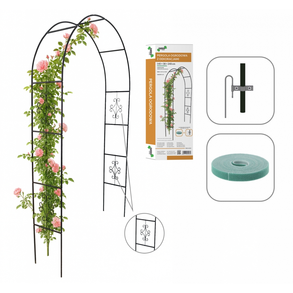 Ši sodo pergola su dekoracijomis ne tik suteikia patikimą atramą vijokliniams augalams, bet ir tampa išraiškingu sodo akcentu. Subtilus dizainas, stabilumas ir kokybiškos medžiagos leidžia džiaugtis tvarkinga, estetiška ir ilgaamže žalia erdve.