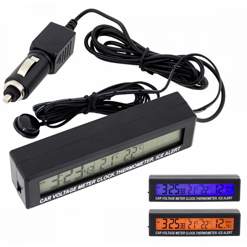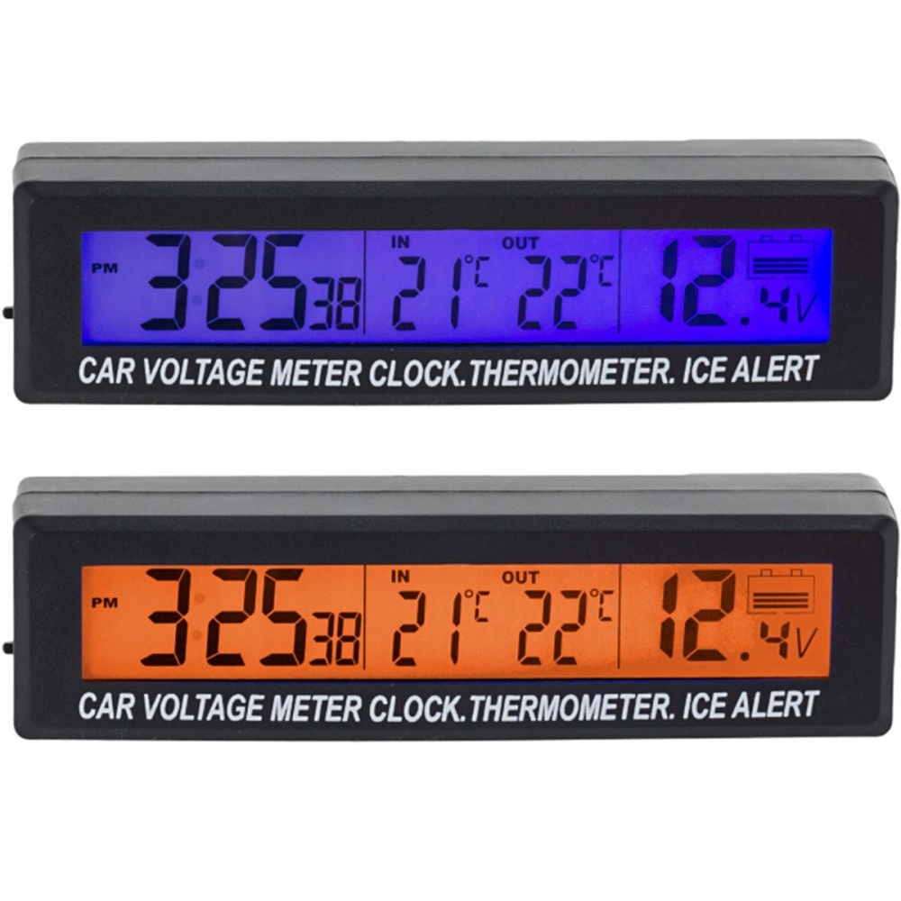 Termometras turi didelį, lengvai įskaitomą LCD ekraną su foniniu apšvietimu (maitinamą 12 V cigarečių degiklio lizdu), kuris vienu metu rodo dviejų jutiklių temperatūrą, laiką ir akumuliatoriaus įtampą!