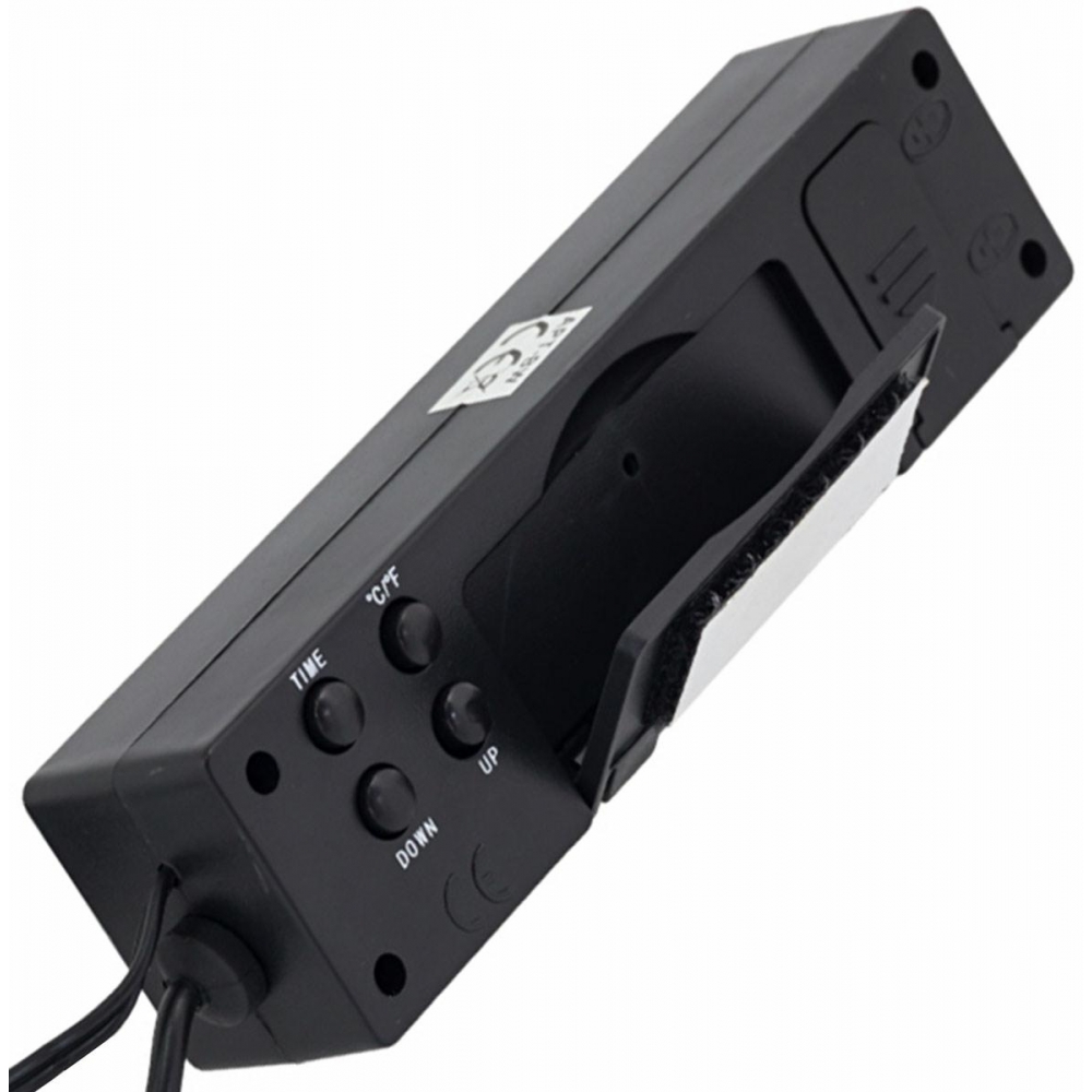 Elektroninis automobilio termometras su laikrodžiu ir akumuliatoriaus įkrovos lygio indikatoriumi.