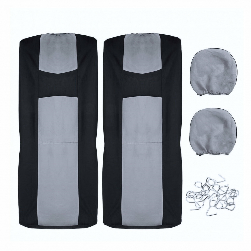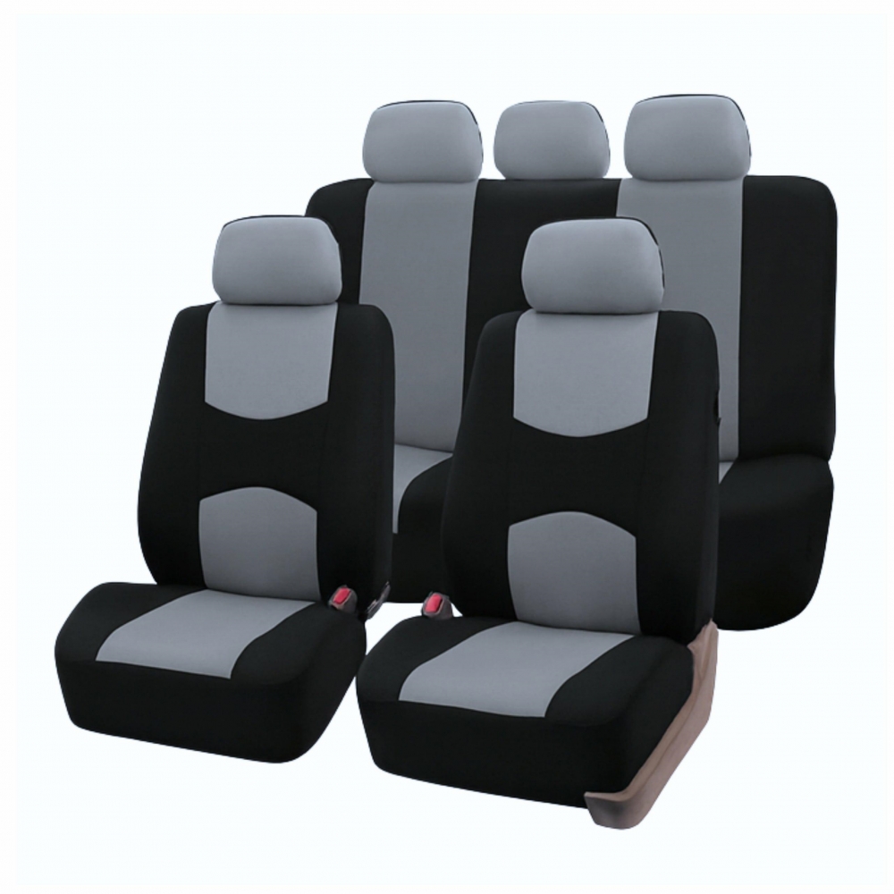 Automobilių sėdynių užvalkalai – praktiškas ir estetiškas būdas atnaujinti automobilio saloną ir apsaugoti originalius apmušalus nuo purvo ir įbrėžimų. Pagaminti iš patvaraus, lengvai valomo juodos ir pilkos spalvos audinio, jie užtikrina komfortą ir elegantišką salono išvaizdą. Komplekte yra priekinių ir galinių sėdynių, taip pat galvos atramų užvalkalai ir tvirtinimo kabliukai.