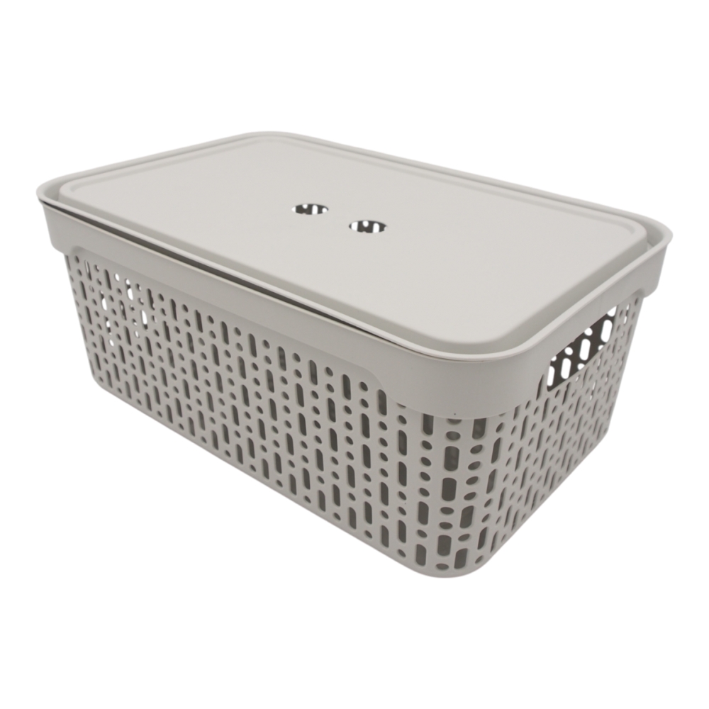 Patogi ir universali plastikinė dėžutė su dangčiu padės palaikyti tvarką jūsų namuose ar biure. Dėka dangčio daiktai bus apsaugoti nuo dulkių ir drėgmės, o perforuotos sienelės užtikrina ventiliaciją.