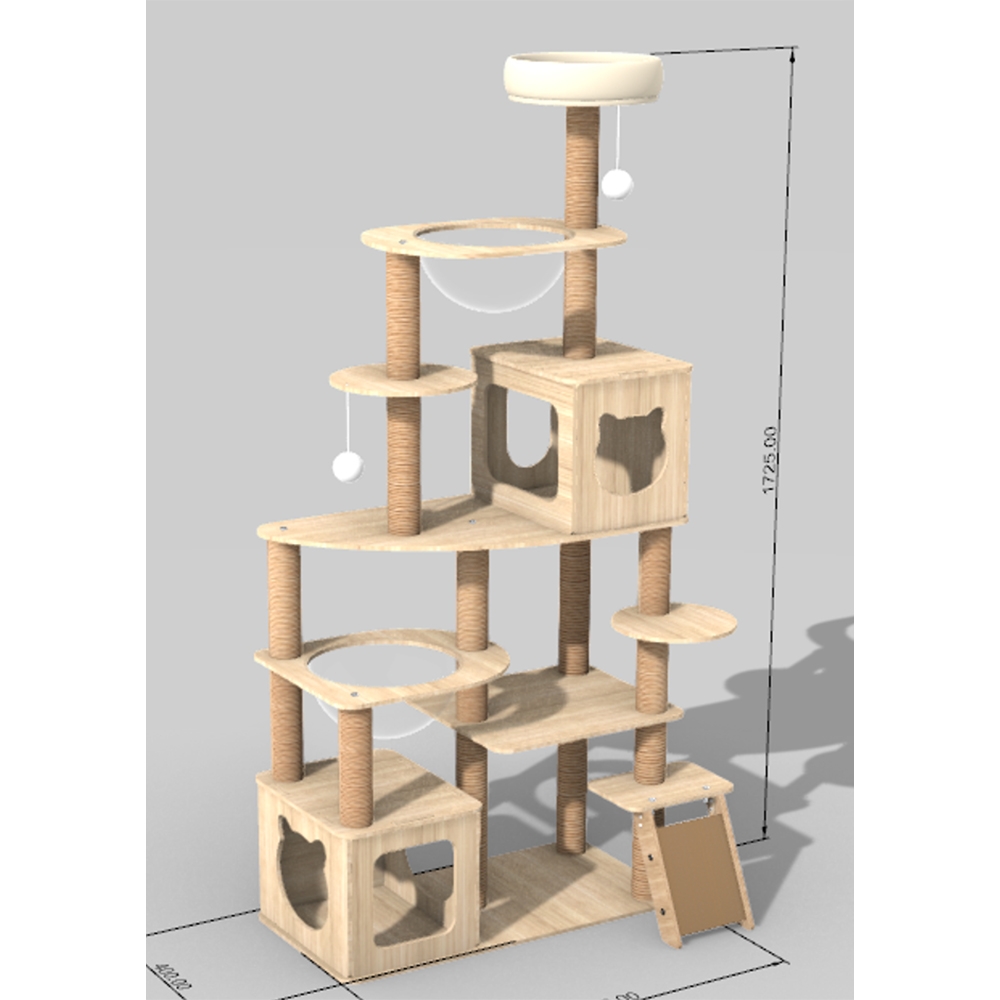 Papildomos platformos ir patogios kopėtėlės leidžia lengvai judėti tarp lygių net mažesnėms ar vyresnėms katėms. Natūralaus medžio dizainas atrodo moderniai, estetiškai ir puikiai dera prie namų interjero.