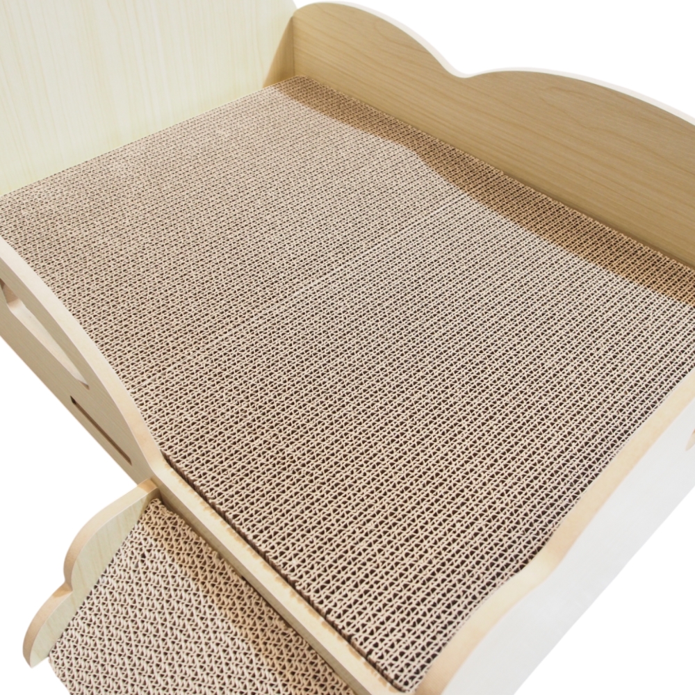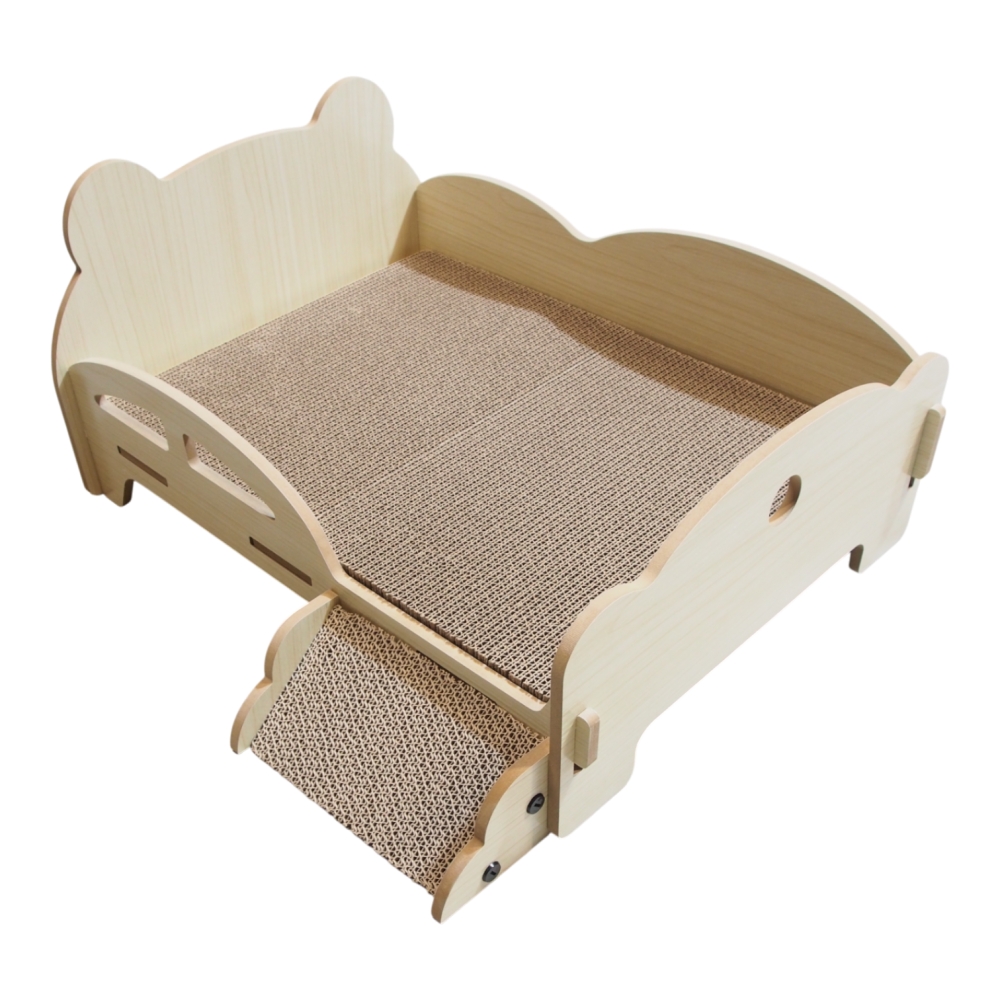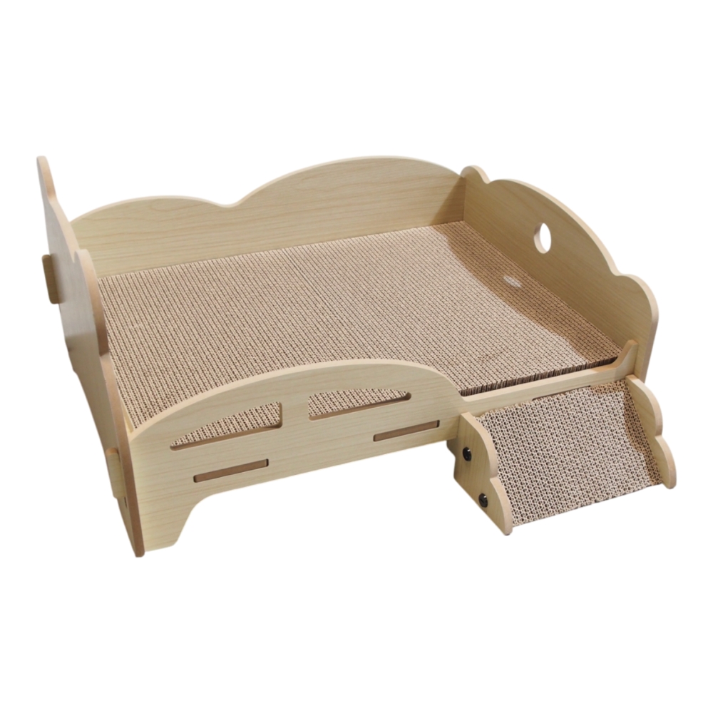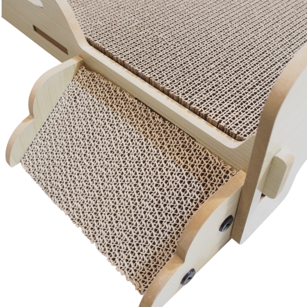 Natūralaus medžio dizainas su švelniomis, apvalintomis formomis puikiai dera prie namų interjero ir atrodo stilingai bei tvarkingai. Konstrukcija stabili ir saugi, todėl tinka tiek kačiukams, tiek suaugusioms ar vyresnėms katėms.