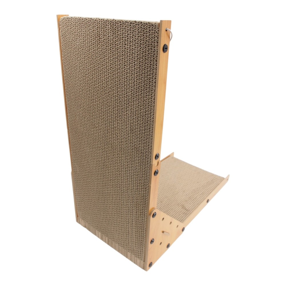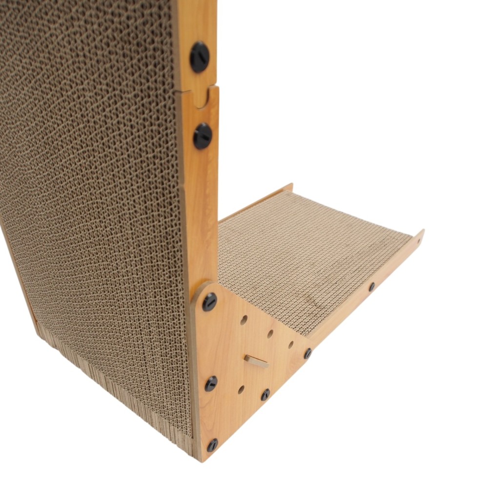 Tvirta medinė konstrukcija užtikrina stabilumą net intensyviai naudojant, o kokybiškas kartoninis paviršius yra atsparus ir pritaikytas kasdieniam draskymui. Dėl savo formos ši draskyklė puikiai tinka pastatyti prie sienos ar kampe, taupant vietą namuose.