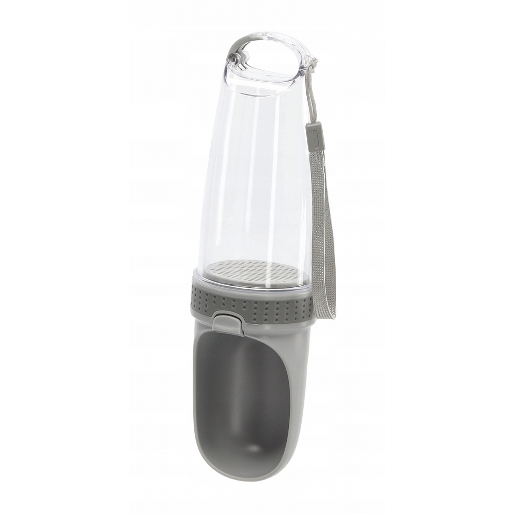 Nešiojamas vandens buteliukas–girdykla skirtas patogiam šuns girdymui pasivaikščiojimų, kelionių ir aktyvaus laisvalaikio metu. Integruota gertuvė leidžia greitai ir švariai paduoti vandenį augintiniui bet kurioje vietoje, užtikrinant, kad šuo visada turėtų prieigą prie šviežio vandens.