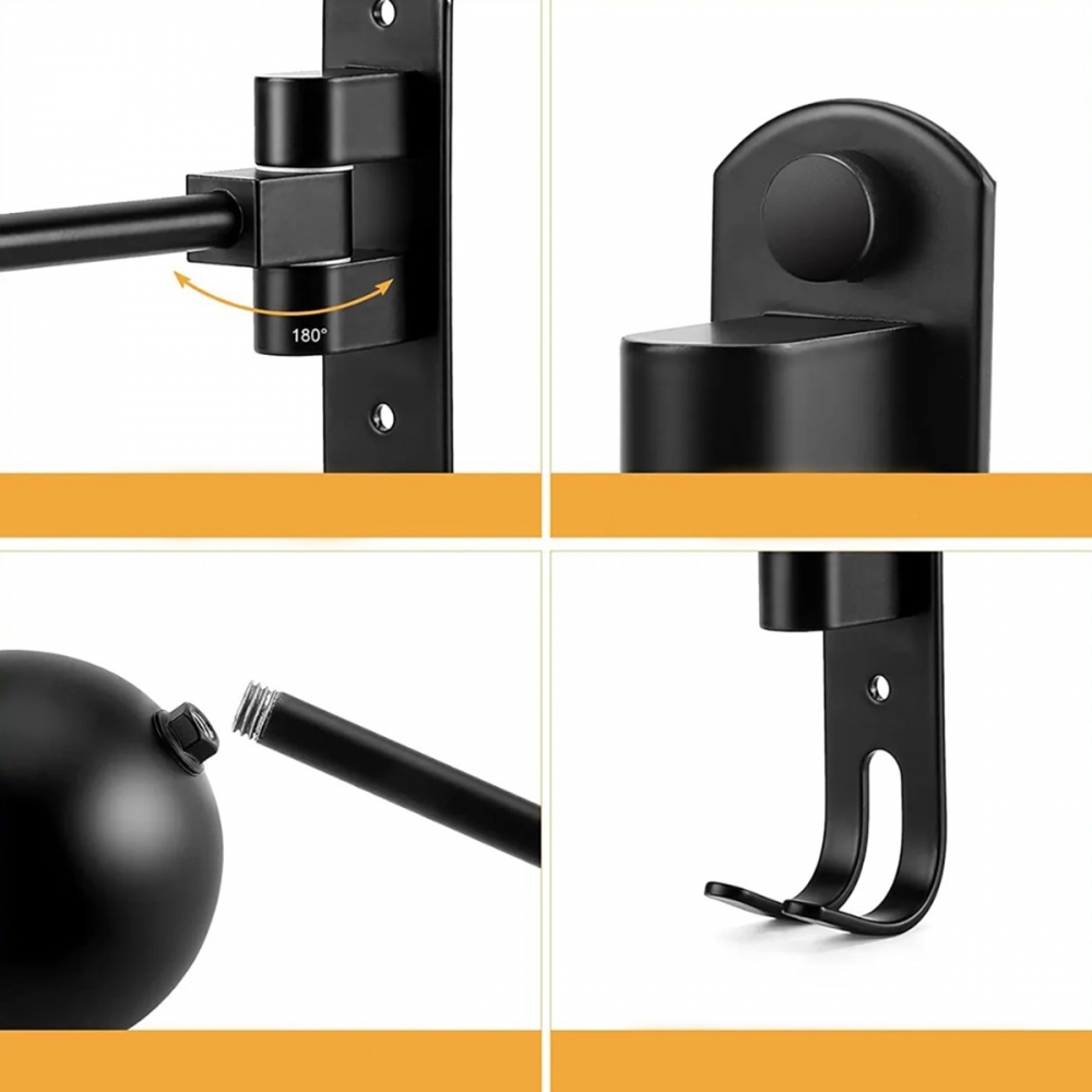 Medžiaga: PP plastikas (kamuolys ir laikiklis) + nerūdijantis plienas (sieninis tvirtinimas)