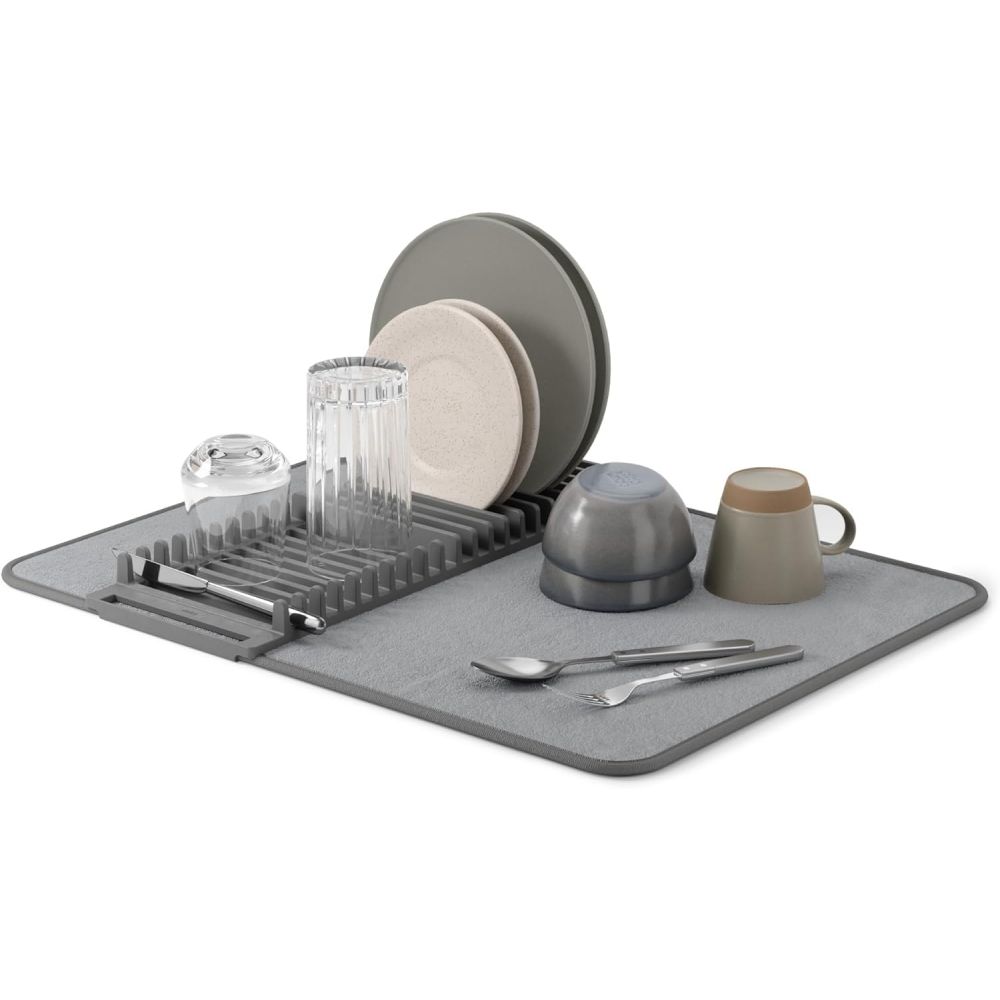 Šis stilingas ir praktiškas indų džiovinimo kilimėlis su plastikiniu laikikliu yra puikus pasirinkimas bet kuriai virtuvei. Didelio dydžio (57x47 cm) kilimėlis pagamintas iš greitai džiūstančios, minkštos ir sugeriančios medžiagos, todėl idealiai tinka dėti po šlapiomis lėkštėmis, stiklinėmis ar stalo įrankiais. Pridedamas plastikinis laikiklis padeda tvarkingai sustatyti indus ir palengvina jų džiovinimą. Kilimėlį galima lengvai sulankstyti ar susukti, kai jo nenaudojate.