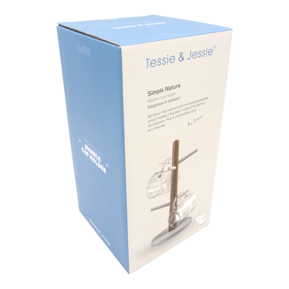 Atraskite stilingą ir funkcionalų būdą laikyti mėgstamiausias puodelių kolekcijas! „Tessie & Jessie“ marmurinis puodelių laikiklis – tai ne tik praktiškas sprendimas kasdieniam naudojimui, bet ir moderni interjero detalė, kuri subtiliai papuoš Jūsų virtuvę ar valgomojo erdvę. Derinant natūralų bambuko medienos stulpelį, marmurinę pagrindo plokštę ir švelniai baltus laikiklius, sukuriamas išskirtinis minimalistinis skandinaviškas dizainas.