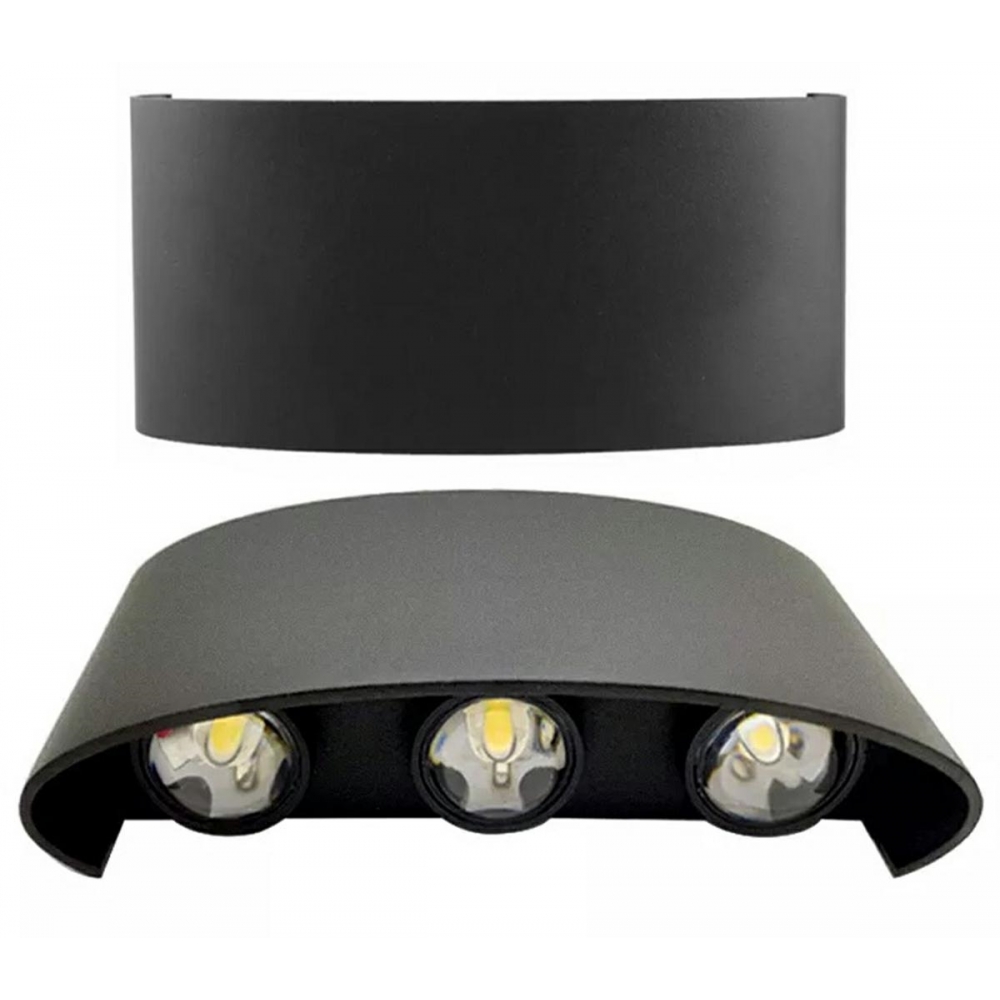 Juodas LED sieninis šviestuvas – 6 šviesos taškai (3 aukštyn + 3 žemyn)