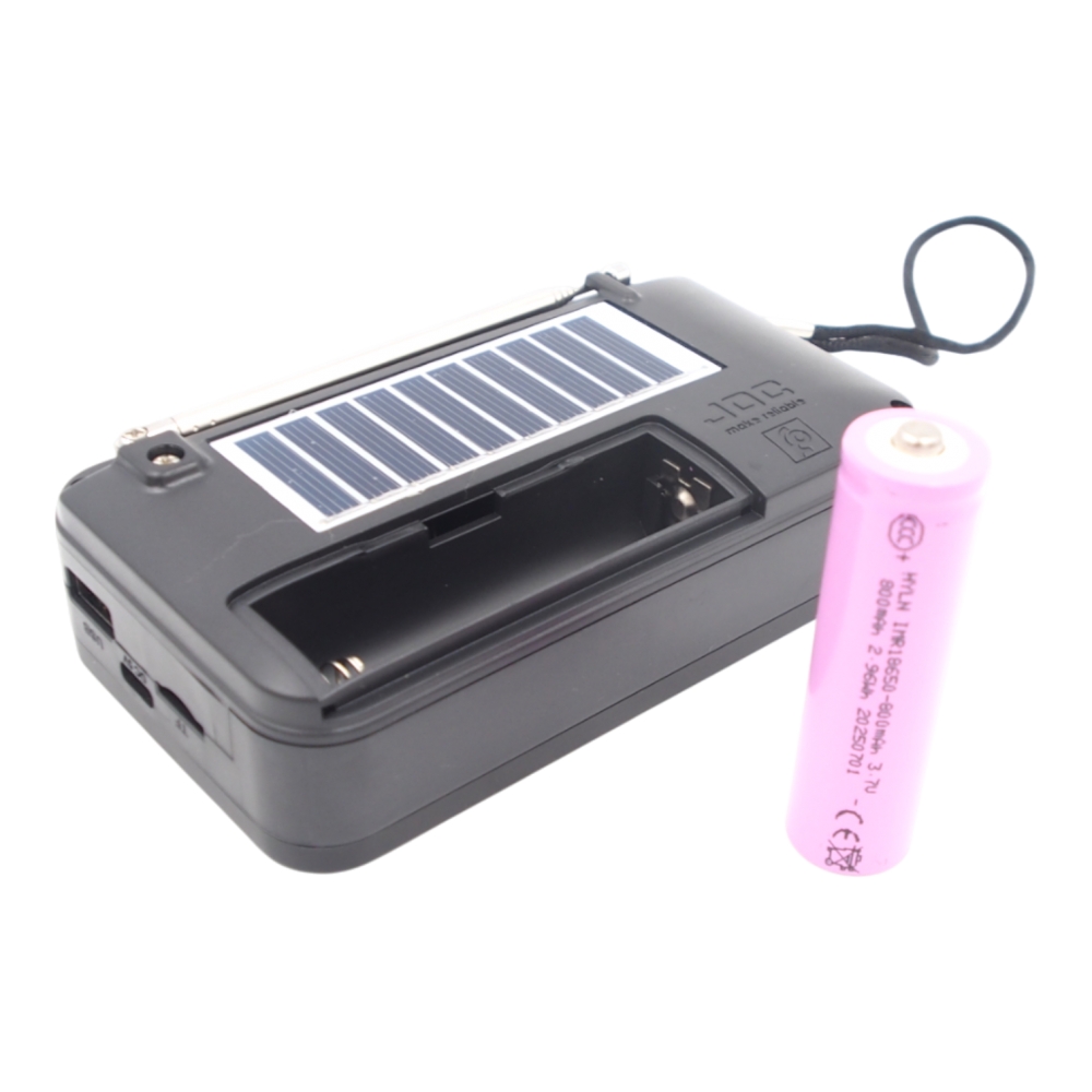 Ant radijos galinės dalies yra įmontuotas saulės baterijos modulis, kuris leidžia įkrauti prietaisą net ir ten, kur nėra elektros. Tai puikus pasirinkimas keliautojams, stovyklaujantiems ar tiesiog norintiems turėti atsarginį energijos šaltinį.