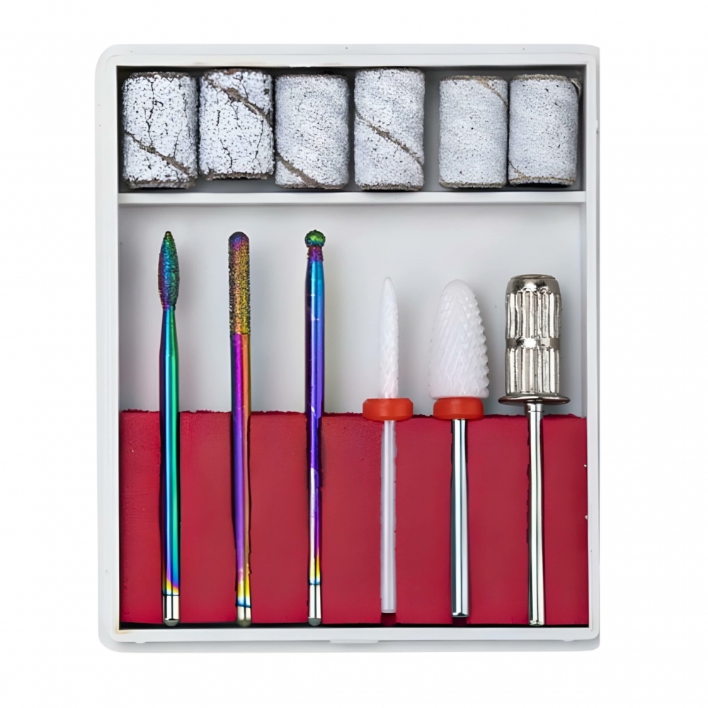 12 manikiūro ir pedikiūro antgalių rinkinys