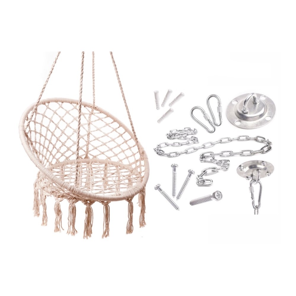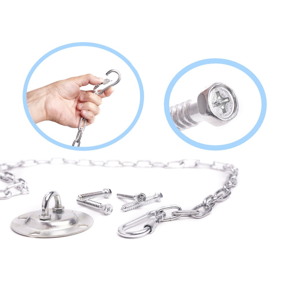 Naudodami šį rinkinį galite patys pasirinkti vietą, kur kabinsite sūpynes ar hamaką. Grandinė su karabinais leidžia greitai ir lengvai reguliuoti aukštį pagal poreikį.