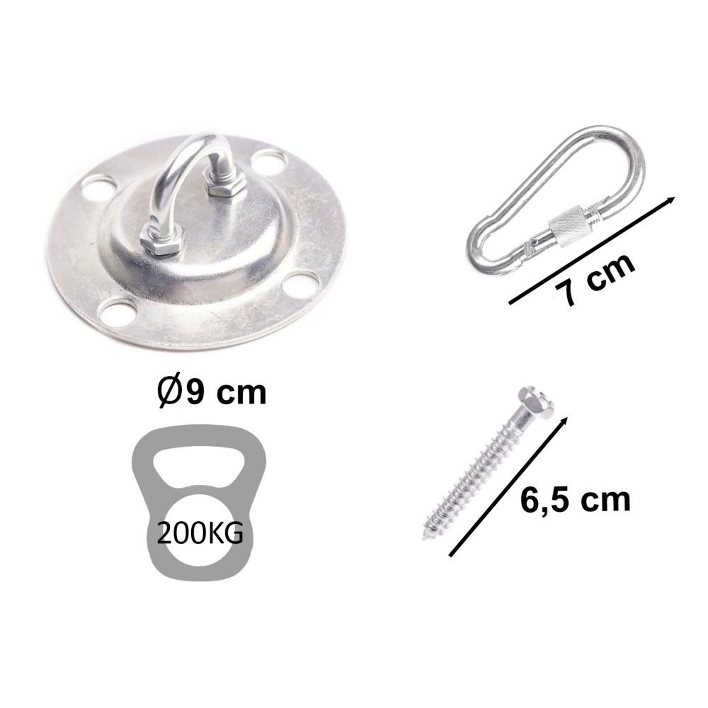 Patikimas ir tvirtas tvirtinimo rinkinys skirtas sūpynėms, „gandro lizdo“ tipo sūpynėms ar hamakams montuoti prie lubų. Šis komplektas leidžia saugiai ir patogiai įrengti poilsio ar pramogų vietą tiek namuose, tiek lauke.