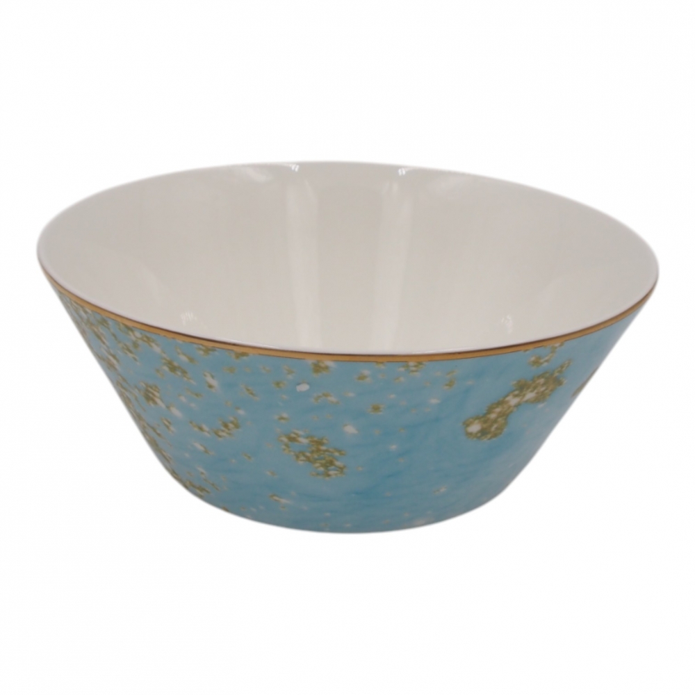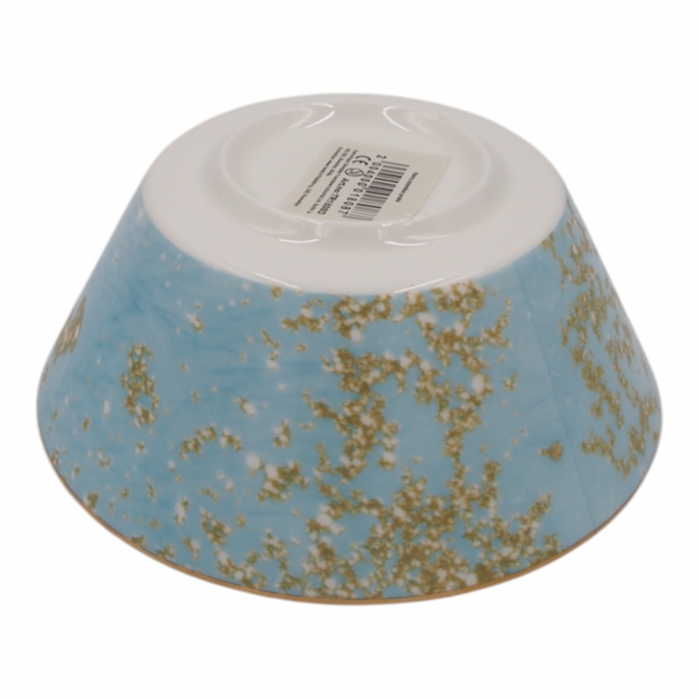 Išskirtinio dizaino keraminis dubuo, dekoruotas mėlynu fonu su auksinėmis detalėmis bei subtiliu kraštelio apvadu. Elegantiškas ir modernus indas, kuris puikiai tinka sriuboms, salotoms, užkandžiams ar vaisiams patiekti.