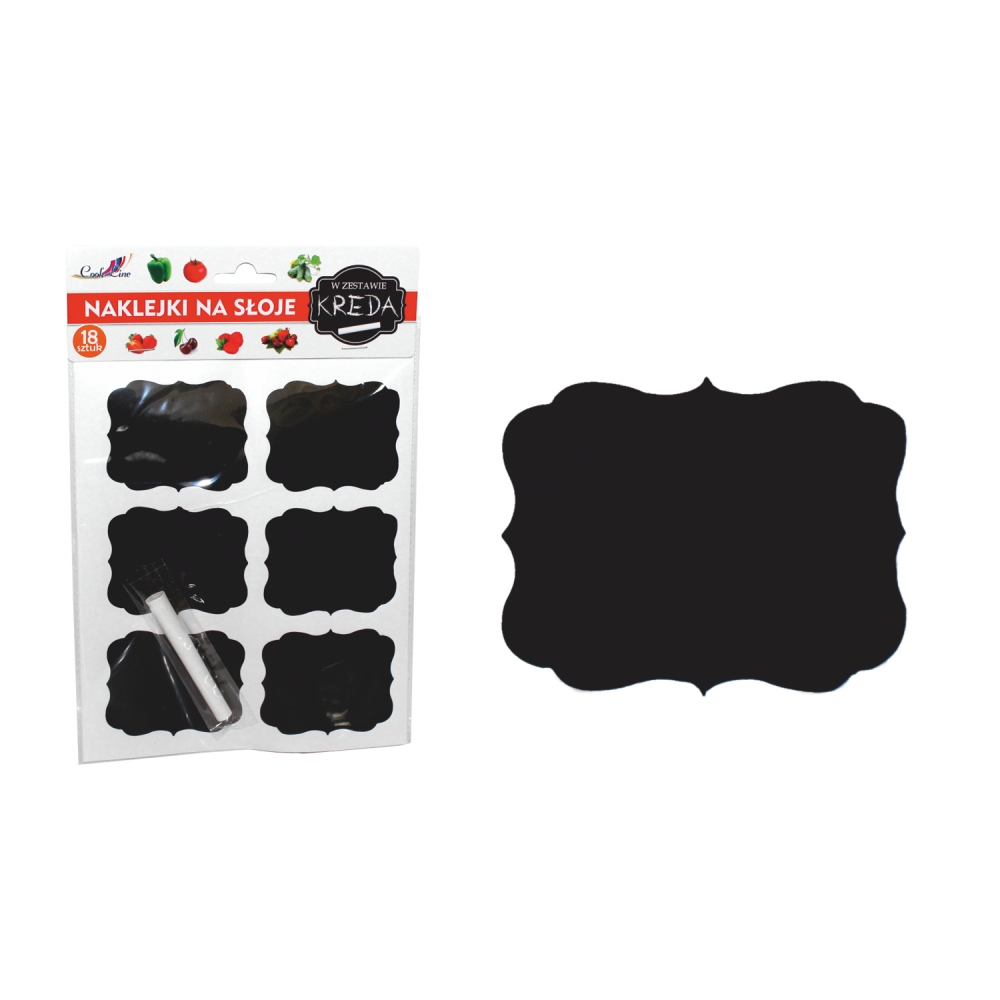 Praktiškas ir estetiškas kreidinių etikečių rinkinys stiklainiams, dėžutėms ir kitiems indams žymėti. Etiketės leidžia lengvai užrašyti turinį, datą ar pavadinimą ir bet kada pakeisti užrašą – pakanka nuvalyti ir užrašyti iš naujo.