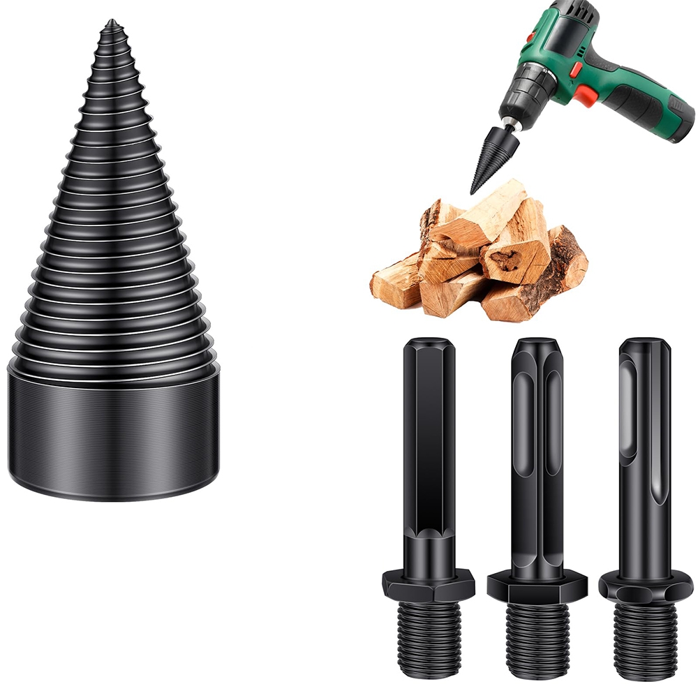 Pamirškite varginantį malkų kapojimą kirviu – šis kūginis malkų skaldymo antgalis gręžtuvui leis greitai, saugiai ir efektyviai suskaldyti malkas vos per kelias sekundes. Tiesiog pritvirtinkite antgalį prie gręžtuvo ar smūginio suktuvo ir paverskite sunkų fizinį darbą paprastu procesu.