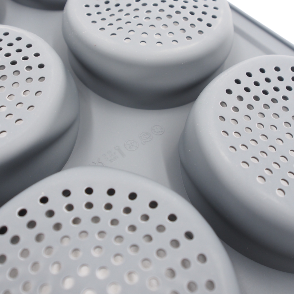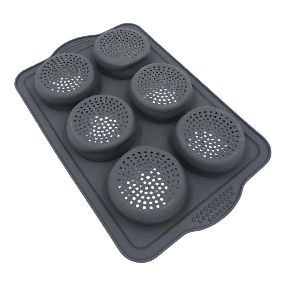 Praktiška ir patogi silikoninė kepimo forma, skirta bandelėms, keksiukams, užkepėlėms ar kitiems porcijiniams kepiniams. Forma turi 6 atskirus skyrelius su perforuotu dugnu, kuris padeda geriau cirkuliuoti karščiui ir užtikrina tolygesnį kepimą.