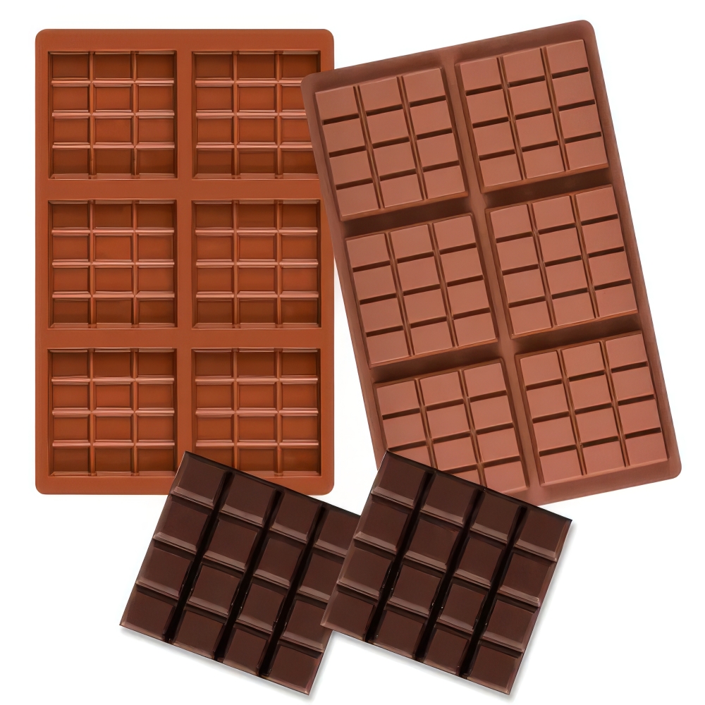 Patogi silikoninė forma skirta naminių šokoladinių plytelių, saldainių ar batonėlių gamybai. Forma turi kelias stačiakampes sekcijas, todėl vienu metu galėsite pasigaminti daugiau vienodų šokolado gabalėlių ar desertinių batonėlių.