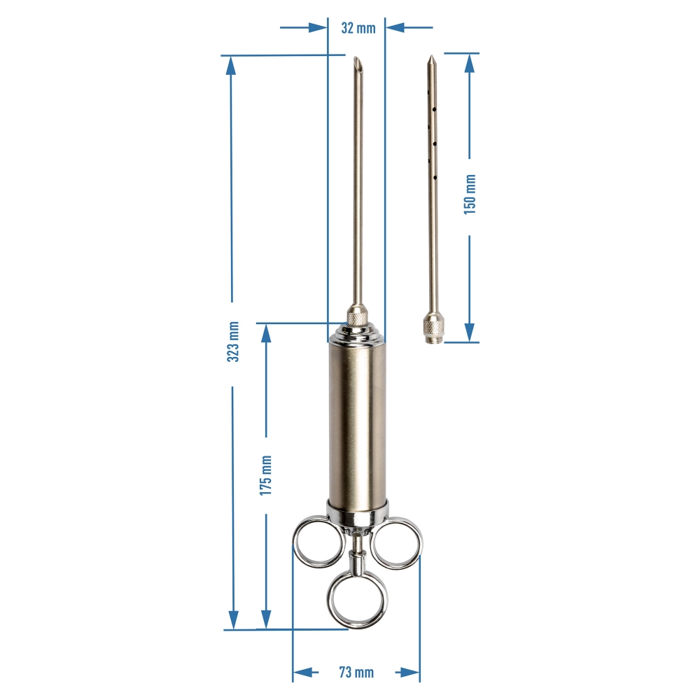 Aukštos kokybės nerūdijančio plieno mėsos švirkštas (60 ml) – tai nepakeičiamas įrankis kiekvienam, norinčiam namuose profesionaliai marinuoti, sūdyti ar brandinti mėsą. Šis mėsos injektorius leidžia tolygiai įšvirkšti marinatą ar sūrymą į mėsos vidų, todėl mėsa tampa sultinga, aromatinga ir vienodai pagardinta.