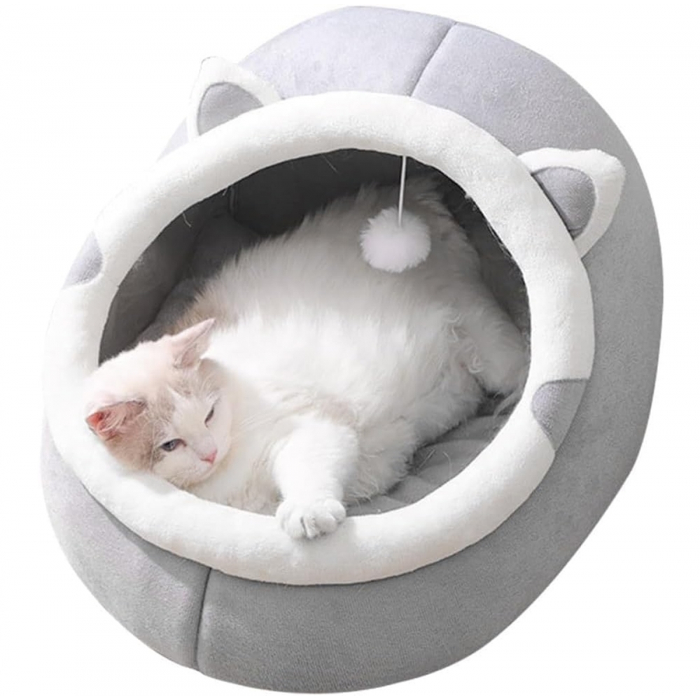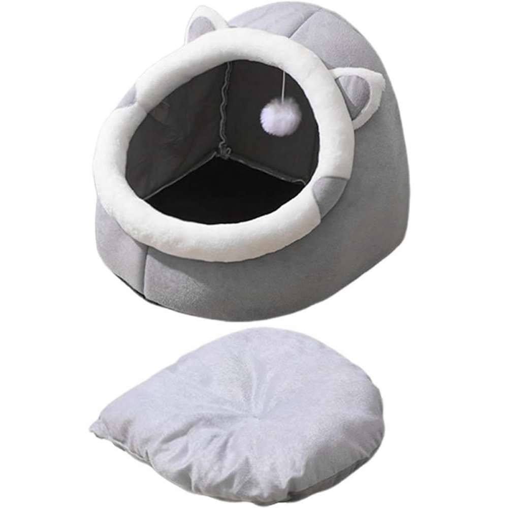 Minkštas ir jaukus guolis, užtikrinantis Jūsų augintinio patogumą bei ramų poilsį. Unikali uždaros būdelės konstrukcija su kačiuko ausytėmis suteikia žaismingą išvaizdą ir sukuria jaukią erdvę gyvūnui. Storos sienelės ir dugnas su neslystančiu audiniu užtikrina stabilumą bei saugumą.