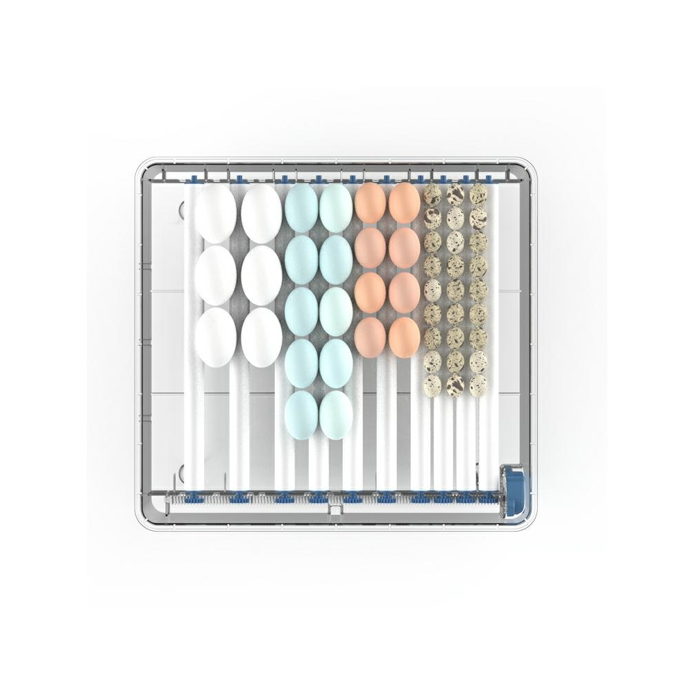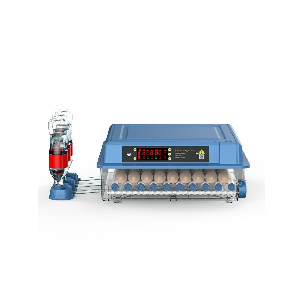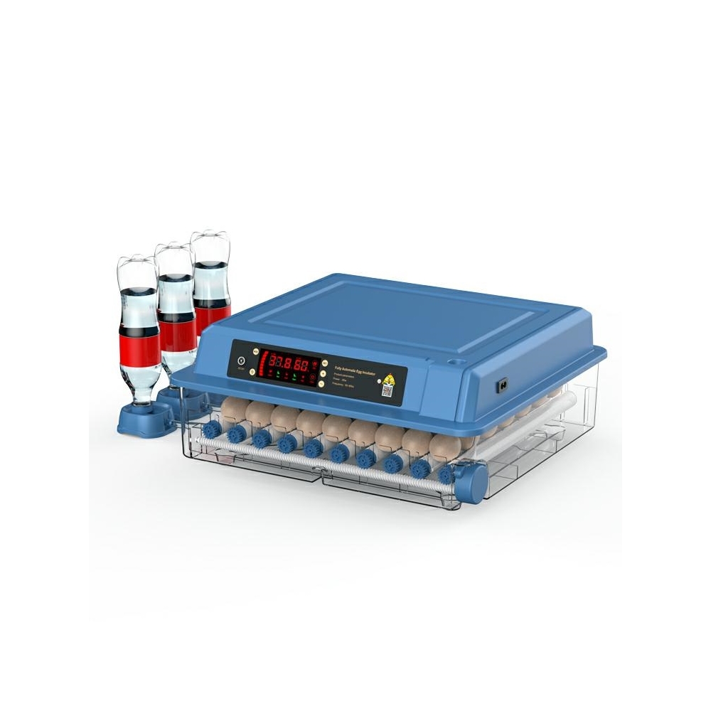 Automatinis kiaušinių inkubatorius vištoms, antims, žąsims ir kitoms naminių paukščių rūšims. Įrengta automatinė kiaušinių vartymo sistema, drėgmės reguliavimas ir LED ekranas su temperatūros valdymu.