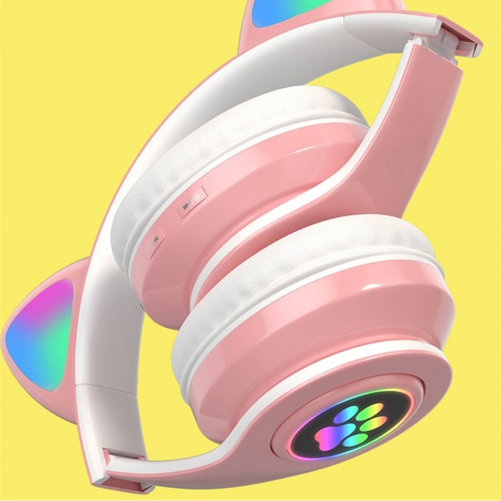 Patogios, belaidės ant ausų dedamos ausinės vaikams. Išskirtinės katės ausų formos ausys su LED foniniu apšvietimu išskirs jūsų vaiką iš minios. Greitas „Bluetooth 5.0“ modulis leidžia patogiai naudoti (diapazonas iki 10 metrų). Maitinamas įmontuotos baterijos, tai puikus ir labai praktiškas įrenginys aktyviems žmonėms ir visiems, kurie vertina patogumą. Patogios ausų pagalvėlės ir triukšmo slopinimo sistema slopina išorinius garsus, žymiai pagerindami muzikos kokybę. Dėl apgalvoto dizaino jos yra neįtikėtinai lengvos ir patogios. Integruoti fiziniai mygtukai leidžia lengvai valdyti ausinių funkcijas. Jose yra įmontuotas FM radijas ir „microSD“ kortelių skaitytuvas su MP3 grotuvu, todėl įrenginį galite naudoti neprisijungę prie išmaniojo telefono.