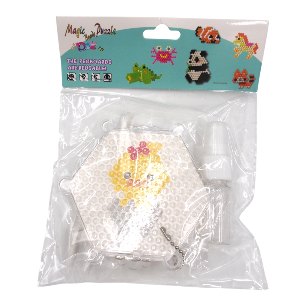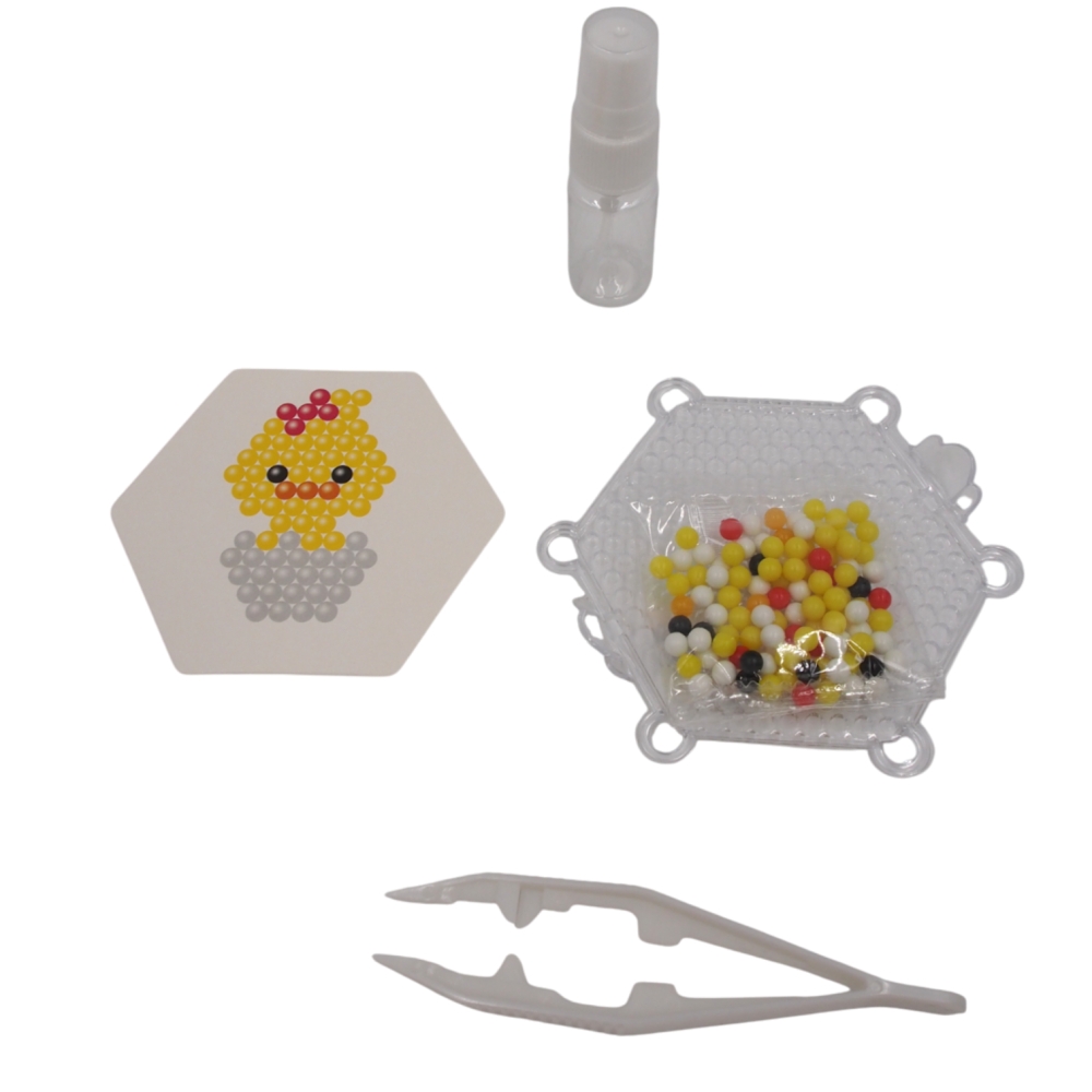Kūrybinis rinkinys vaikams, leidžiantis sudėlioti mielą viščiuko paveikslėlį. Karoliukai dedami ant daugkartinio pagrindo ir sutvirtinami vandeniu – be karščio ar klijų! Tai smagus ir lavinantis užsiėmimas, ugdantis kruopštumą bei kūrybiškumą.