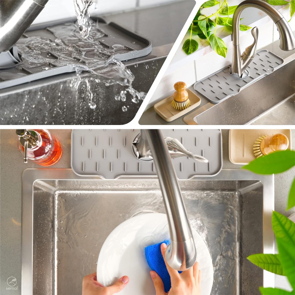 Praktiška silikoninė apsauga montuojama aplink maišytuvą padeda išlaikyti kriauklės zoną sausą ir švarią. Specialus nuolydžio dizainas nukreipia vandenį atgal į kriauklę, todėl vanduo nesikaupia ant stalviršio ir nepalieka dėmių.