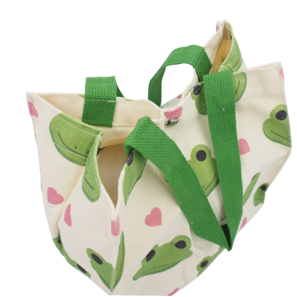Kompaktiškas ir praktiškas mini medžiaginis krepšelis, puikiai tinkantis pietų dėžutei, užkandžiams, kepiniams ar įvairioms smulkmenoms laikyti ir nešioti. Dėl patogaus dydžio krepšelis idealiai tinka kasdieniam naudojimui – į darbą, mokyklą, išvykas ar trumpus apsipirkimus.