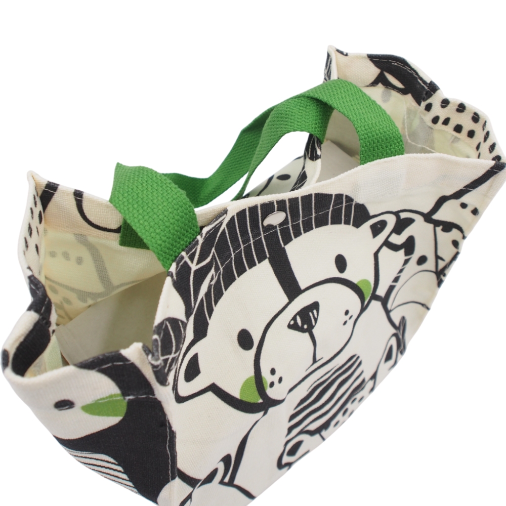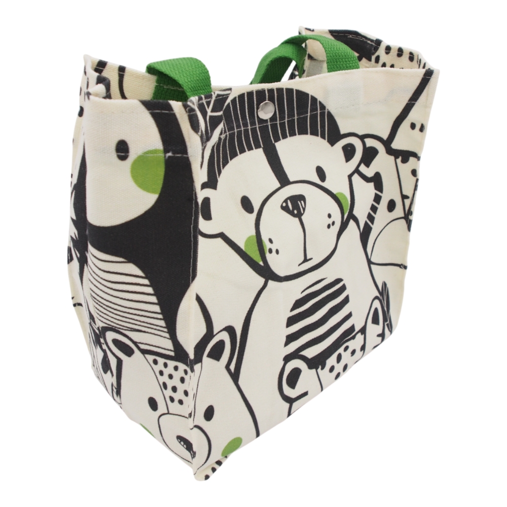 Kompaktiškas ir praktiškas mini medžiaginis krepšelis, puikiai tinkantis pietų dėžutei, užkandžiams, kepiniams ar įvairioms smulkmenoms laikyti ir nešioti. Dėl patogaus dydžio krepšelis idealiai tinka kasdieniam naudojimui – į darbą, mokyklą, išvykas ar trumpus apsipirkimus.
