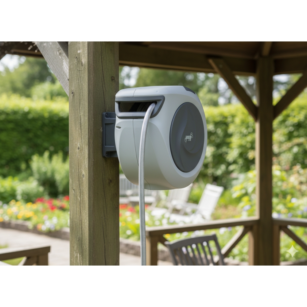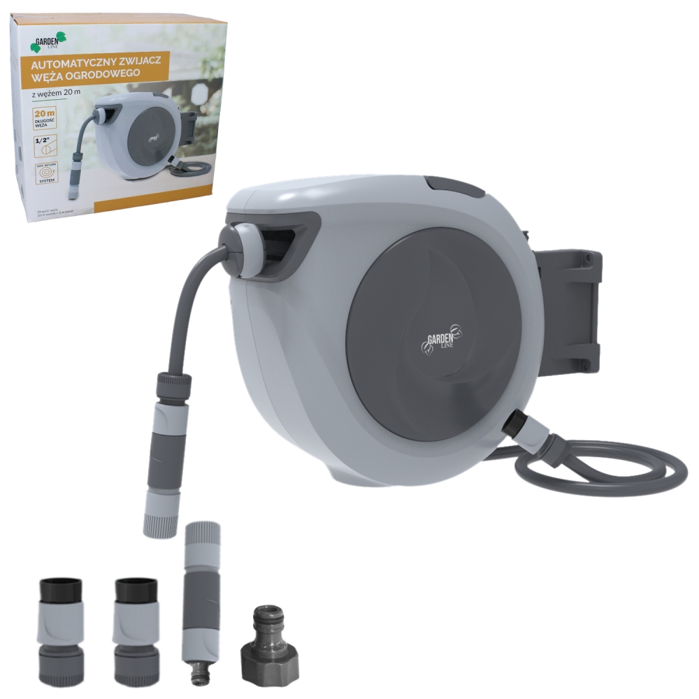 Automatinė sodo žarnos ritė su 20 metrų ilgio žarna – praktiškas sprendimas patogiam ir tvarkingam laistymui. Integruotas automatinio suvyniojimo mechanizmas leidžia greitai ir saugiai suvynioti žarną be raizgalynių, o pasukamas sieninis laikiklis užtikrina patogų naudojimą ir laikymą. Komplekte yra visi reikalingi priedai, todėl įrenginys paruoštas naudoti iš karto.