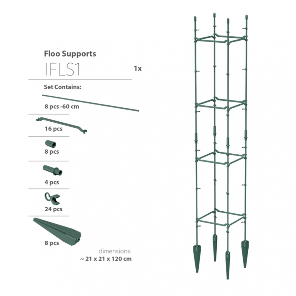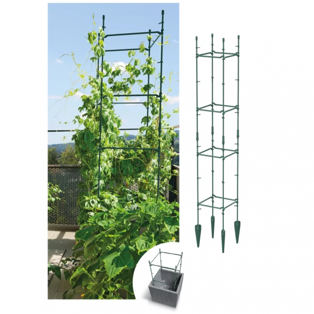 Universalus augalų atramos rinkinys leidžia iš 1 komplekto suformuoti skirtingo dydžio ir formos konstrukcijas pagal jūsų augalų poreikius. Puikiai tinka vijokliniams ir lipantiems augalams – žirniams, pupelėms, agurkams, nasturtėms, klematams, gebenėms ar kitoms dekoratyvinėms ir daržinėms kultūroms.