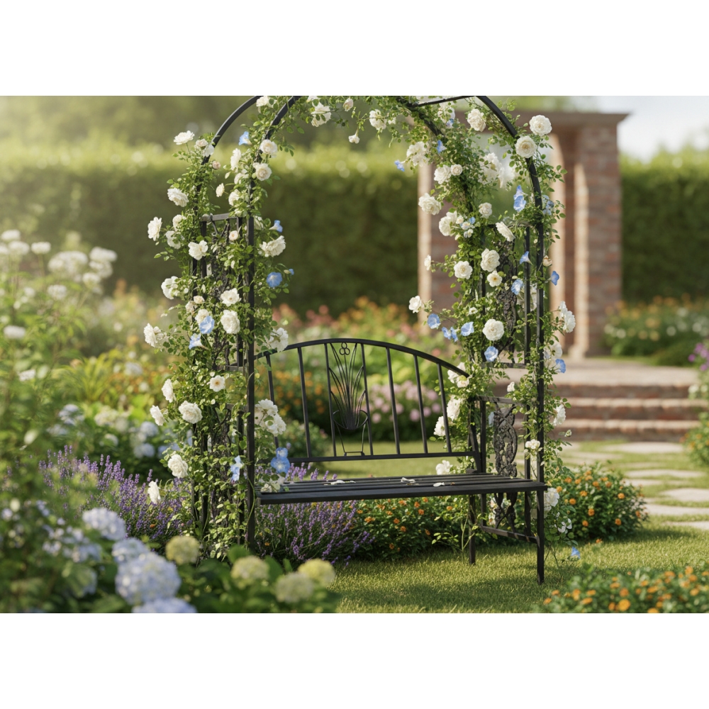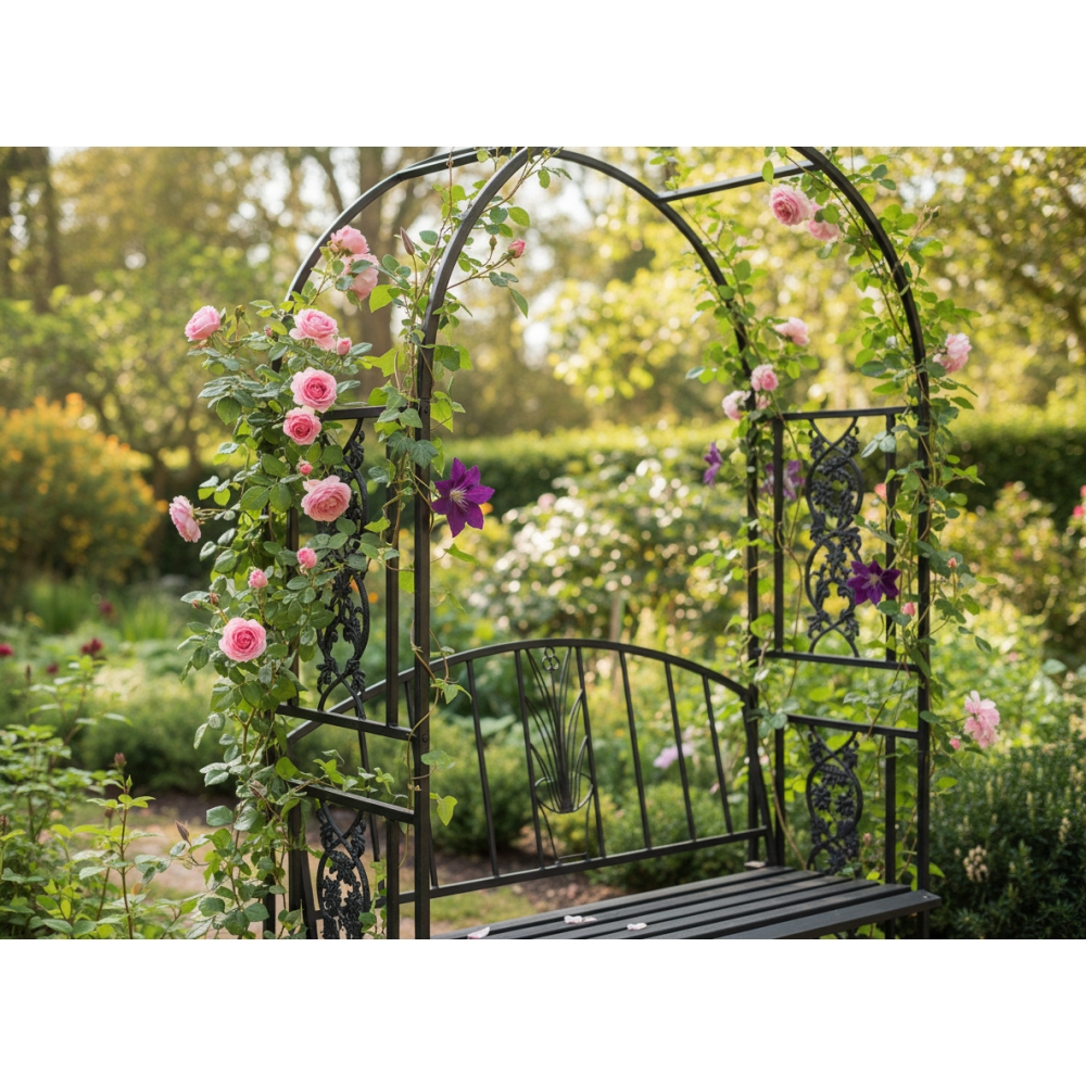 Tvirta, milteliniu būdu dažyta plieno konstrukcija užtikrina stabilumą bei atsparumą aplinkos poveikiui. Pergolė idealiai tinka rožėms, gebenėms ar kitiems vijokliniams augalams, taip pat gali būti dekoruojama šviesų girliandomis ar kitais lauko aksesuarais.