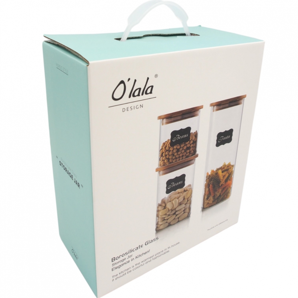 „O’lala Design“ stiklo indelių rinkinys su bambuko dangteliais ir stovu